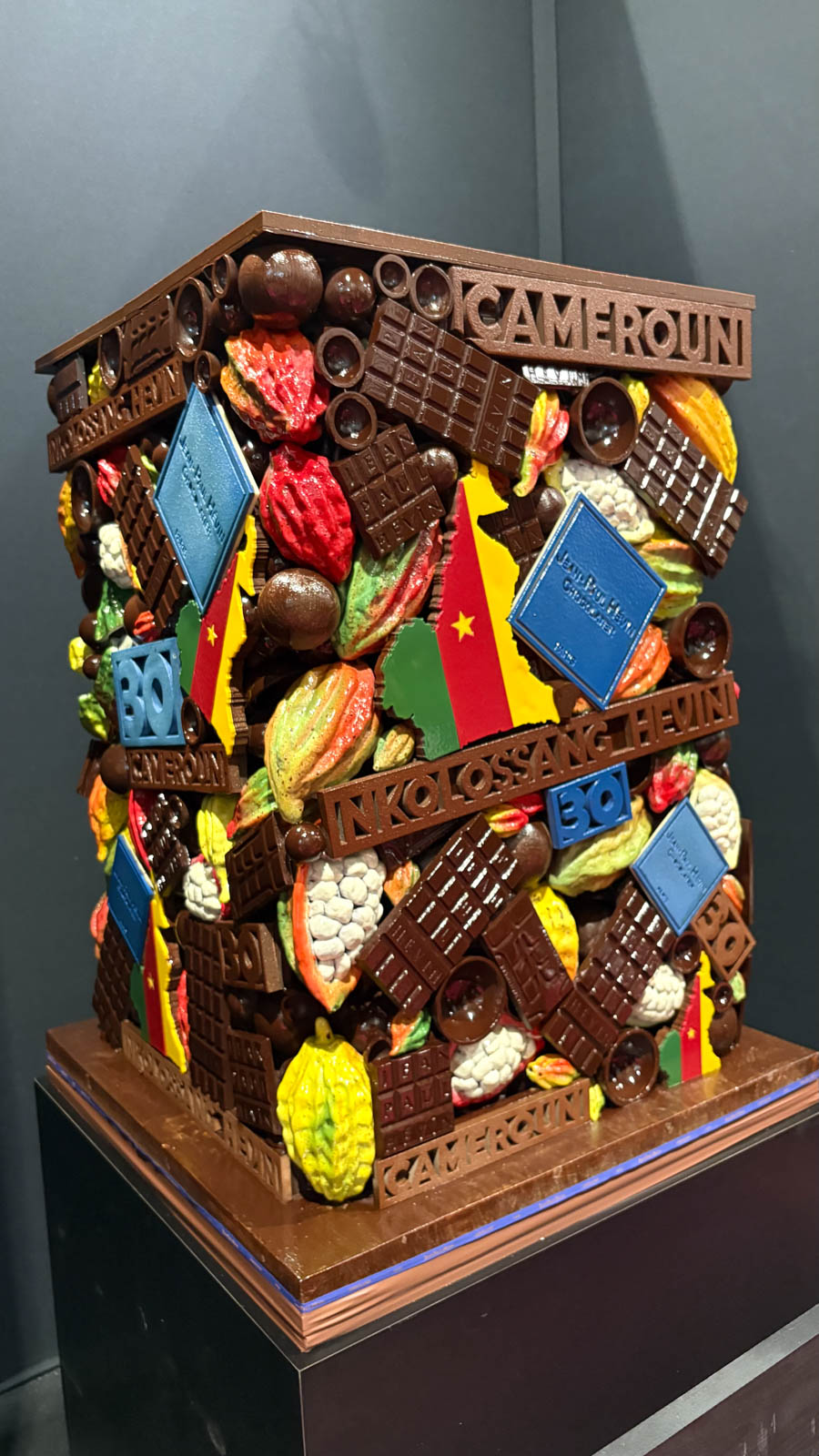 Bien sûr, le salon du chocolat, ce sont aussi des pâtisseries dressées sous nos yeux, de nombreux stands pour acheter du chocolat selon nos goûts, un show musical (une prochaine année car la configuration avec bébé ne s’y prêtait pas), des œuvres en chocolat exposées, etc.