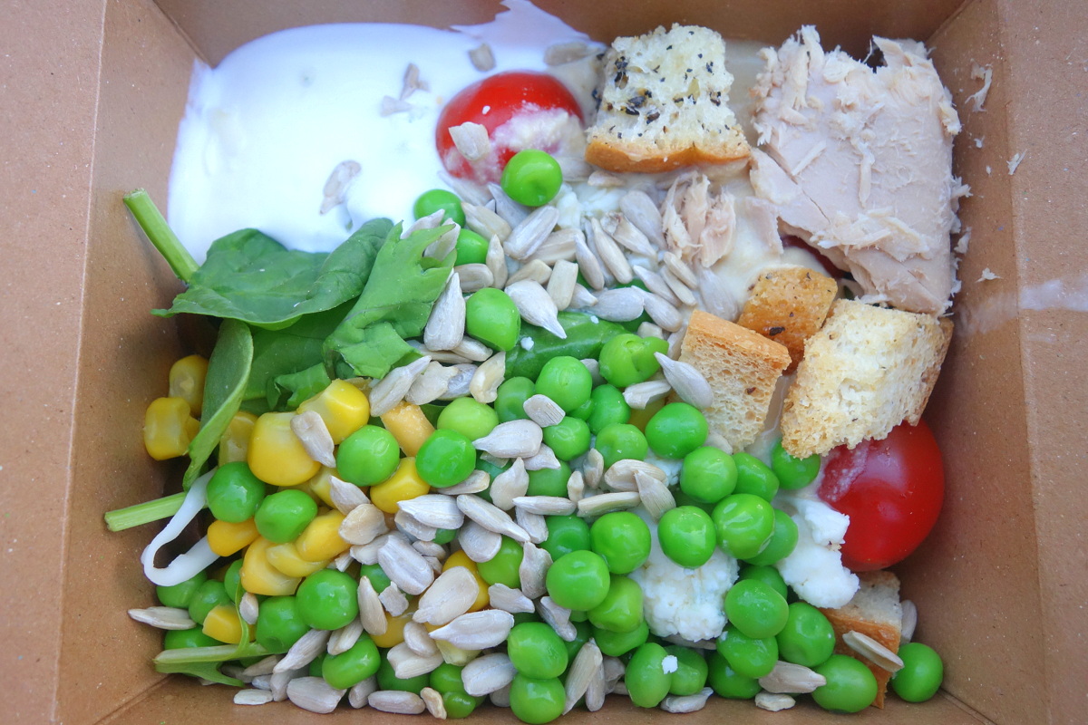 Crudités, fromage, lasagnes épinard-champignons, hoki et autres poissons, graines, etc. Peu importe ce que l’on met dans nos barquettes, on paie au poids. Le choix de boissons fraîches est grand comme la limonade à la fraise qui a fait mon bonheur. Addition pour au moins quatre repas et des en-cas ou petits-déjeuners pour une personne : 52$ (47€).