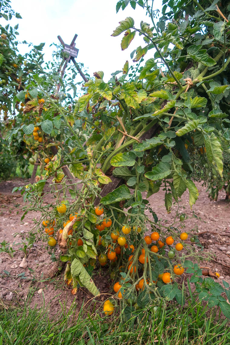 Le potager de la Bourdaisière rassemble une collection de tomates de 700 variétés. Elle est agréée « collection nationale » depuis 1998. Les variétés sont regroupées par couleur dans les différents massifs et plantées selon l’ordre alphabétique. Le rêve !