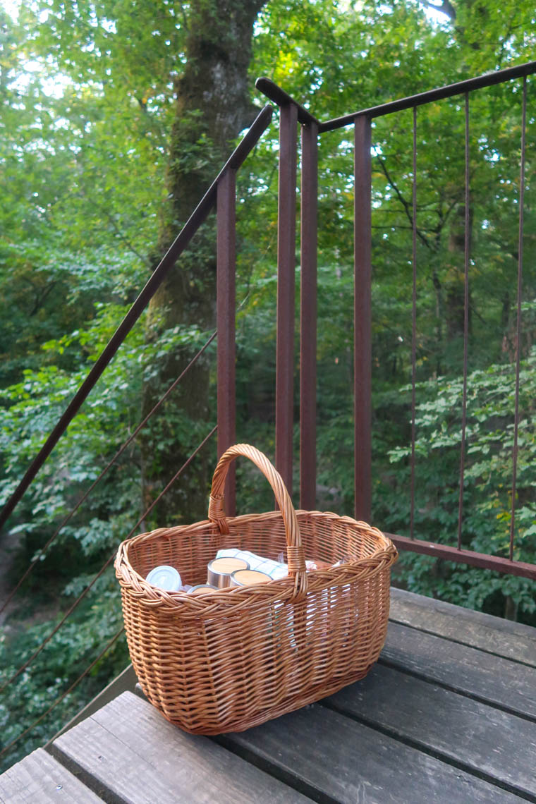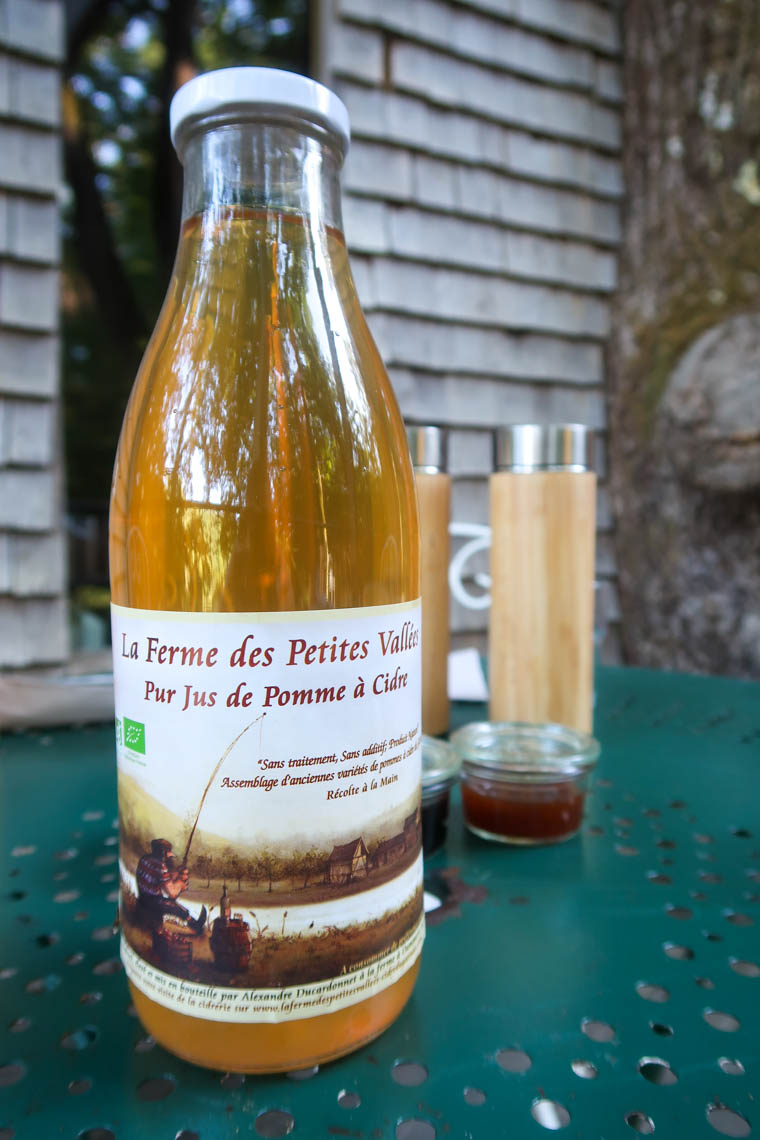 Chaque matin, le petit-déjeuner est livré aux alentours de 8h. Nous avions chacun un thermos avec la boisson de notre choix : café, thé ou chocolat chaud. Un délicieux pain tranché, des confitures maison aussi originales que réussies, du beurre, du jus de pomme artisanal et des madeleines venaient compléter le tout. Miam !