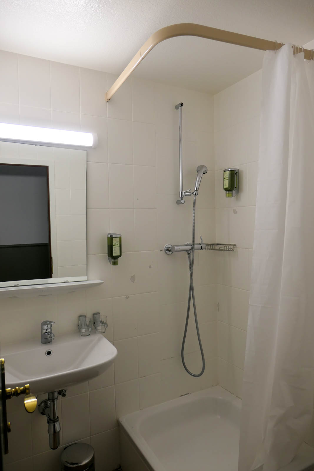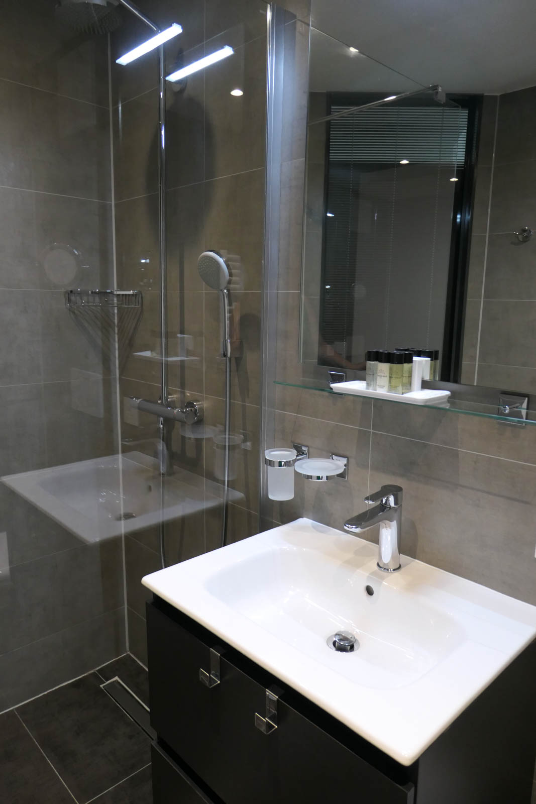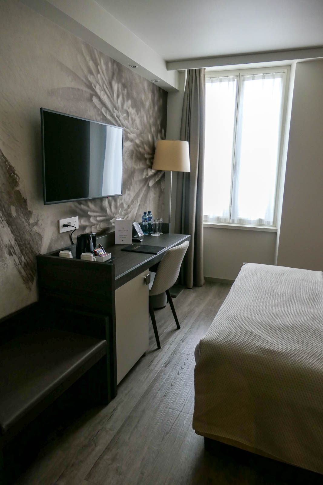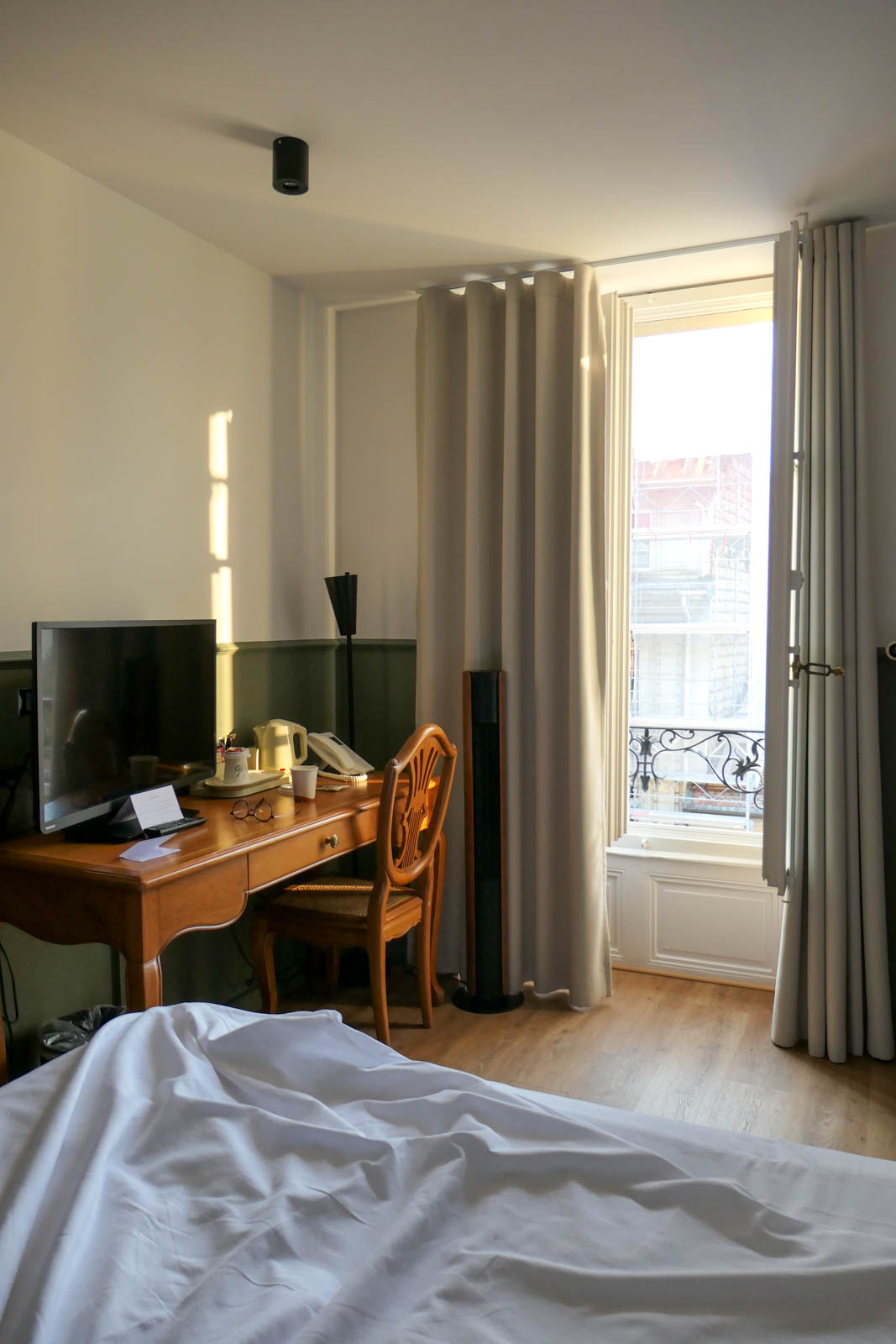 Nous avons séjourné la première nuit de notre week-end à l’hôtel Ambassador de Nyon, facilement accessible depuis la gare de Nyon. Ma chambre était une chambre standard avec un lit Queen Size. D’une superficie de 20m2 environ, elle comprend une salle d’eau avec une vaste douche. La vue donne sur la rue Saint-Jean. La vue sur le lac et le château fait passer le tarif de la nuit de 205 à 260€.