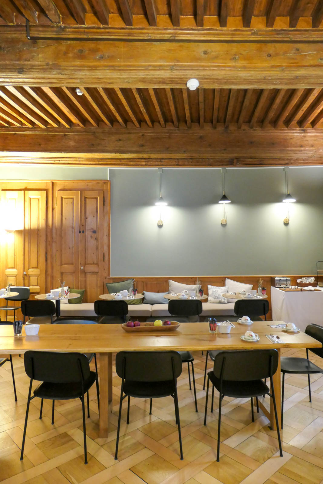 Le petit-déjeuner et le cadre dans lequel il est servi – oh, les belles boiseries ♥ – sont de vrais aouts. Il est offert et complet : œufs, céréales, viennoiseries, boissons chaudes, etc. Nous avons essayé de ne pas abuser car nous savions que nous allions manger le midi et pas trop tard mais les propositions étaient alléchantes.