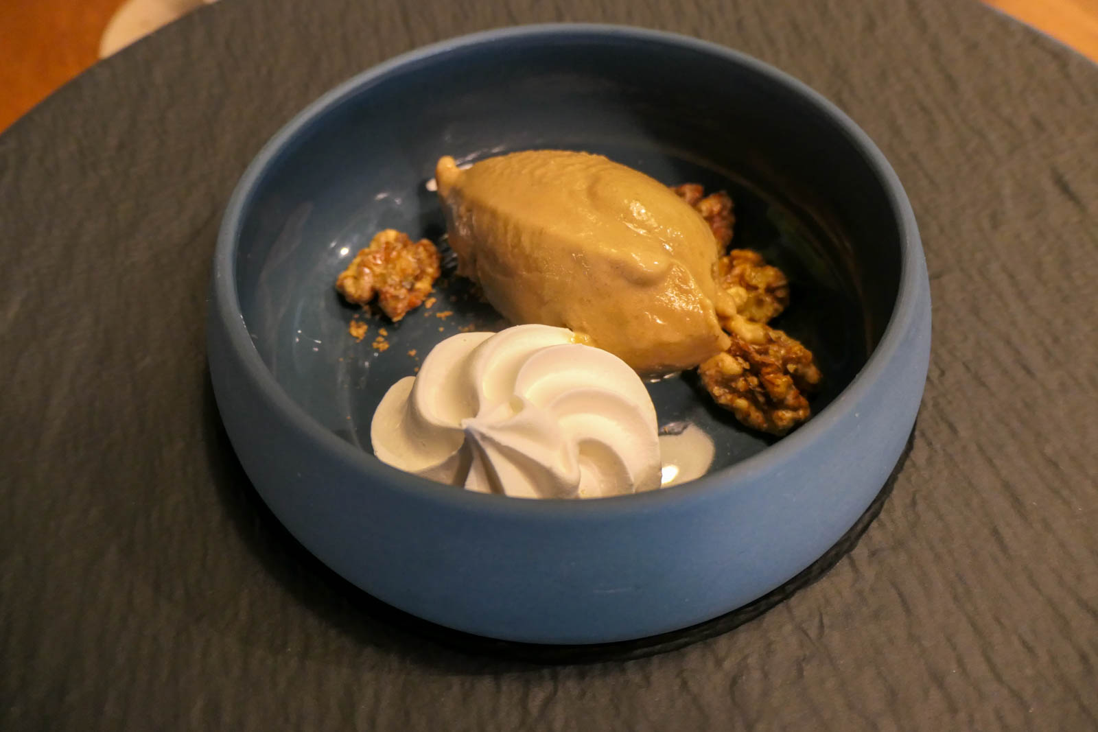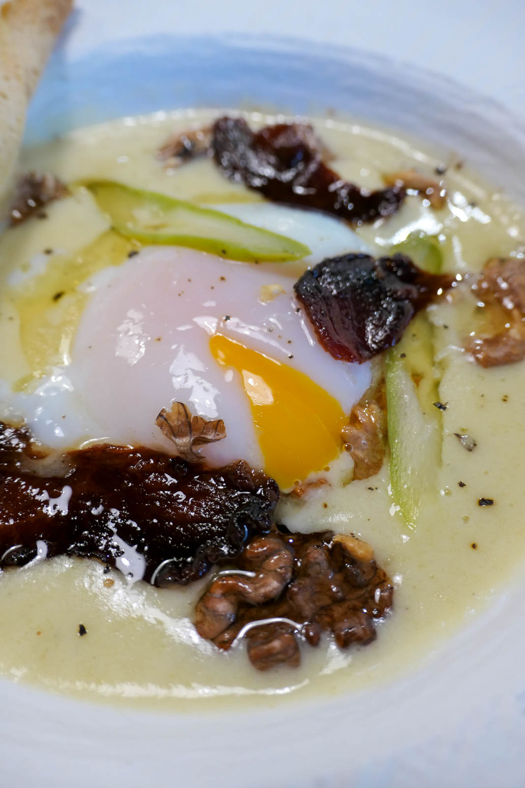 En entrée, je n’ai pas résisté à l’appel de l’œuf parfait, crème d’asperge blanche au sbrinz, lard, noix, huile de noix (17 CHF). C’était vraiment délicieux et réconfortant ♥