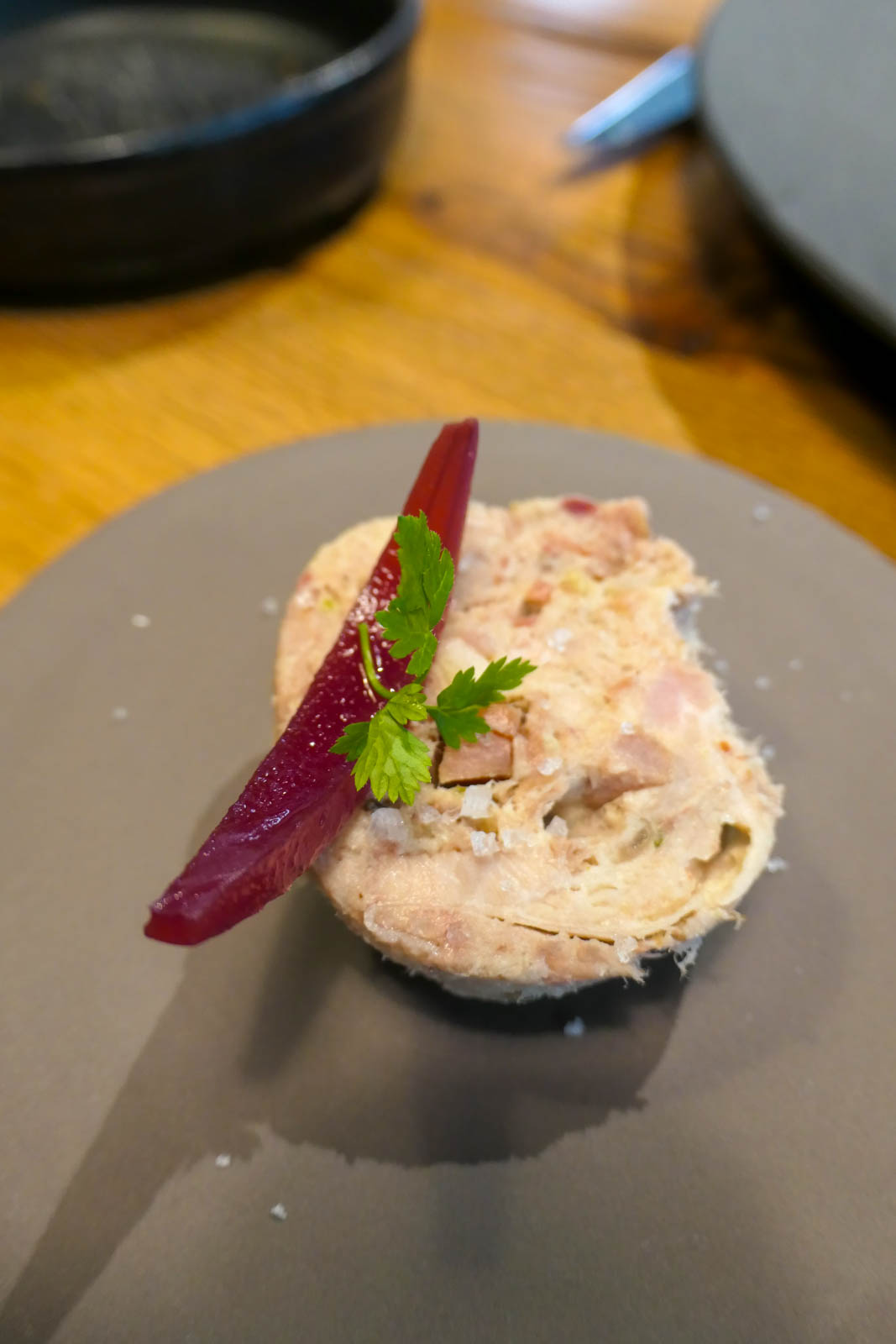 En amuse-bouche, nous avons dégusté une rillette de porc, accompagnée de bon pain.