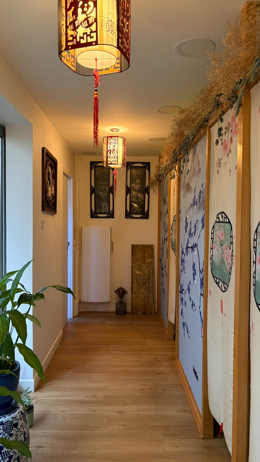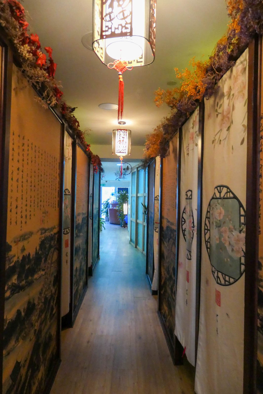 Je suis ensuite allée en cabine, derrière un rideau. J’ai une nouvelle fois pu apprécier le voyage que constitue un moment au Lanqi Spa du XVe arrondissement de Paris : la vue sur le jardin intérieur, les peintures et tissus, etc.