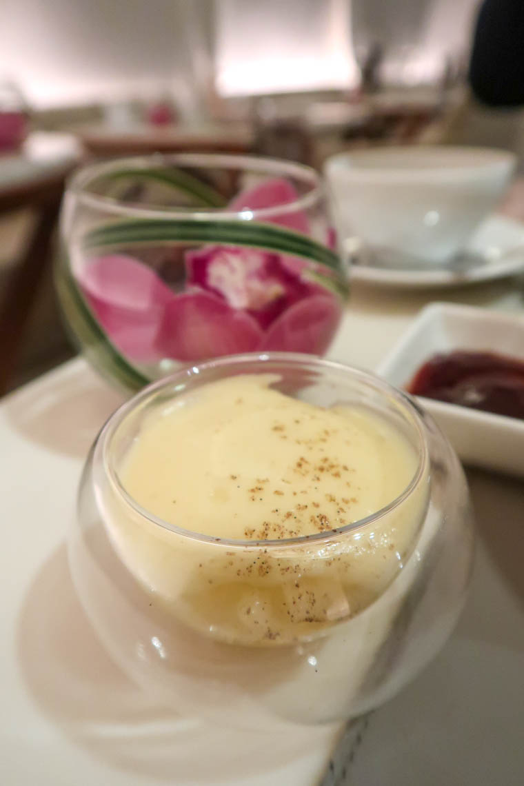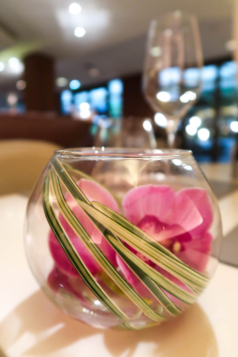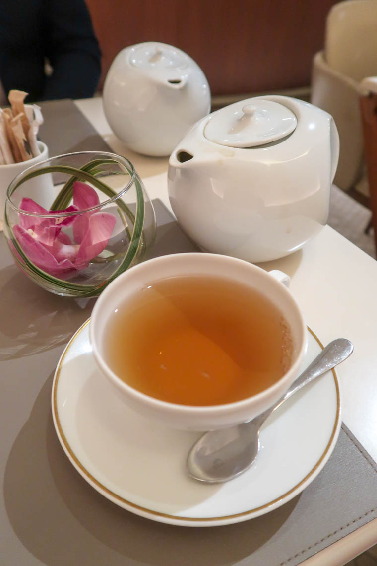 Le Mandarin oriental a une jolie décoration, moderne et chic. Le Camélia est particulièrement épuré et sobre avec une dominante de blanc. J’étais bien installée sur une banquette. Le jardin intérieur semble très beau mais la période et la météo ne permettaient pas d’envisager s’y installer.
