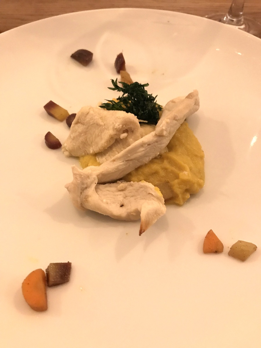 Nous nous sommes régalés dès la première entrée : une soupe de potimarron – qui a fini 3e ex-æquo – avec des lardons et de la crème.
