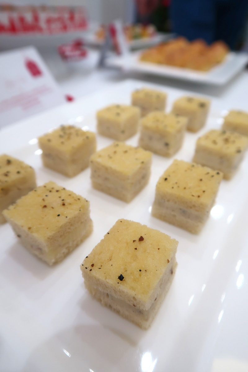 • 12 mini-croques au Comté AOP et à la truffe blanche d’été (1,2%) aromatisés (5,99€), des carrés de pain de mie à l’huile d’olive, une béchamel légère au Comté AOP et des brisures de truffes blanches d’été