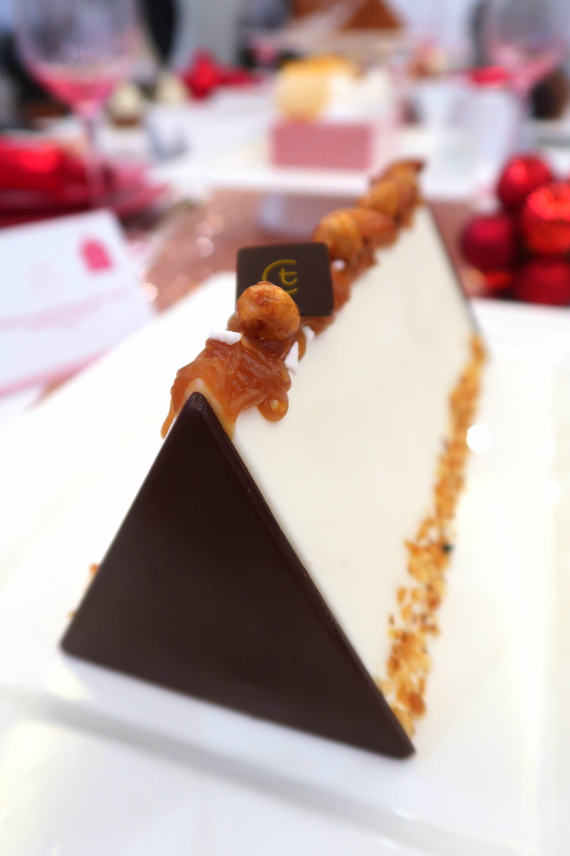 Mes goûts très « choco-chocolatés » ne m’auraient a priori pas portée vers cette bûche, qui se veut fraîche et plutôt légère. L’équipe a tenu à me la faire goûter et je dois avouer avoir été séduite. L’ensemble était savoureux avec différentes textures et une meringue qui vient adoucir le tout.