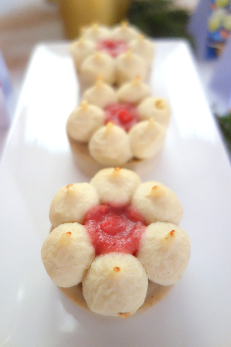 – six étoiles de sablé au pavot, fromage frais au citron, crevette marinée au piment d’Espelette AOP