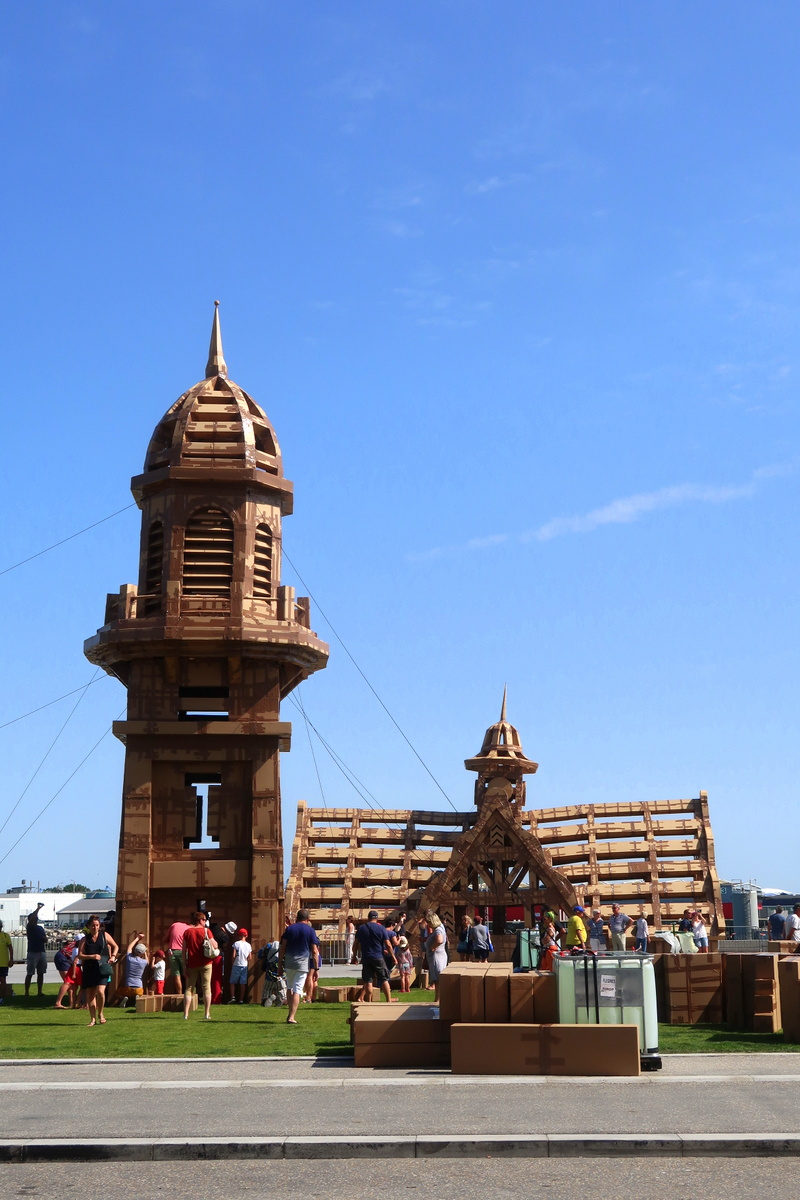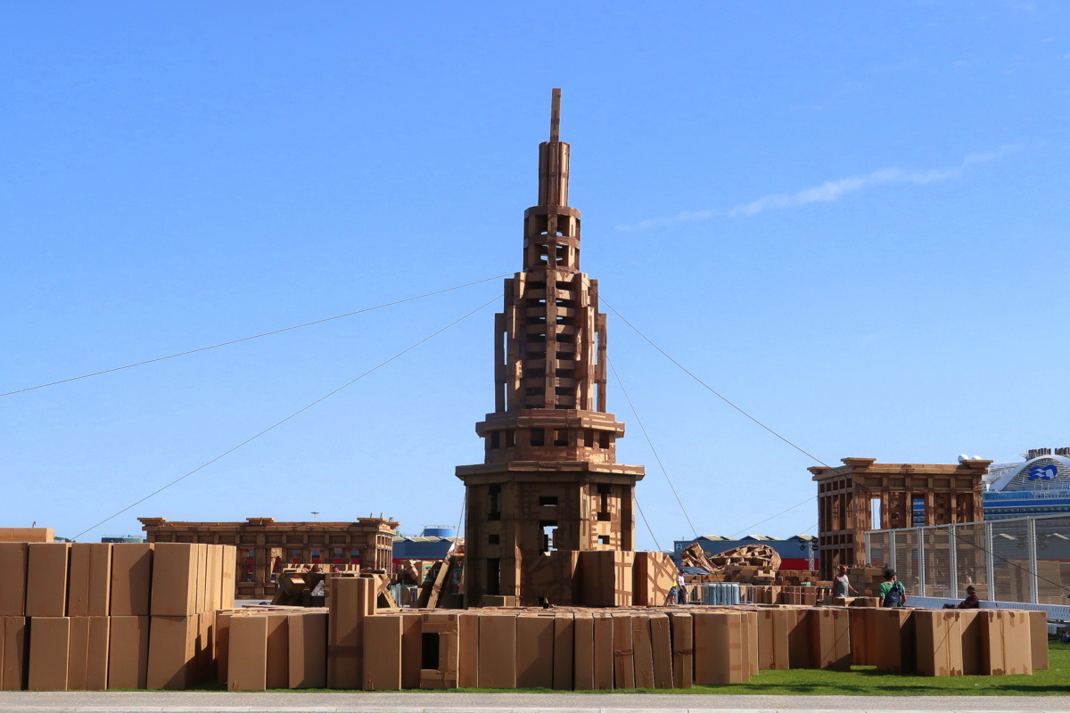 Olivier Grossetête a imaginé une grande ville éphémère en carton : les Cités oubliées, qui n’ont existé que fin juin. Le samedi, nous avons vu des volontaires la construire sous un soleil de plomb. Dès le lendemain, après notre départ, elle a été démolie. Le vent avait mené la vie dure à l’œuvre mais, même imparfaite, j’ai trouvé le concept génial.
