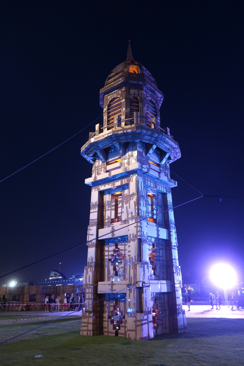 L’installation UP#3 de Lang et Baumann est comme posée sur la plage. Immanquable avec ses 10 mètres de hauteur, elle remet son environnement en perspective.