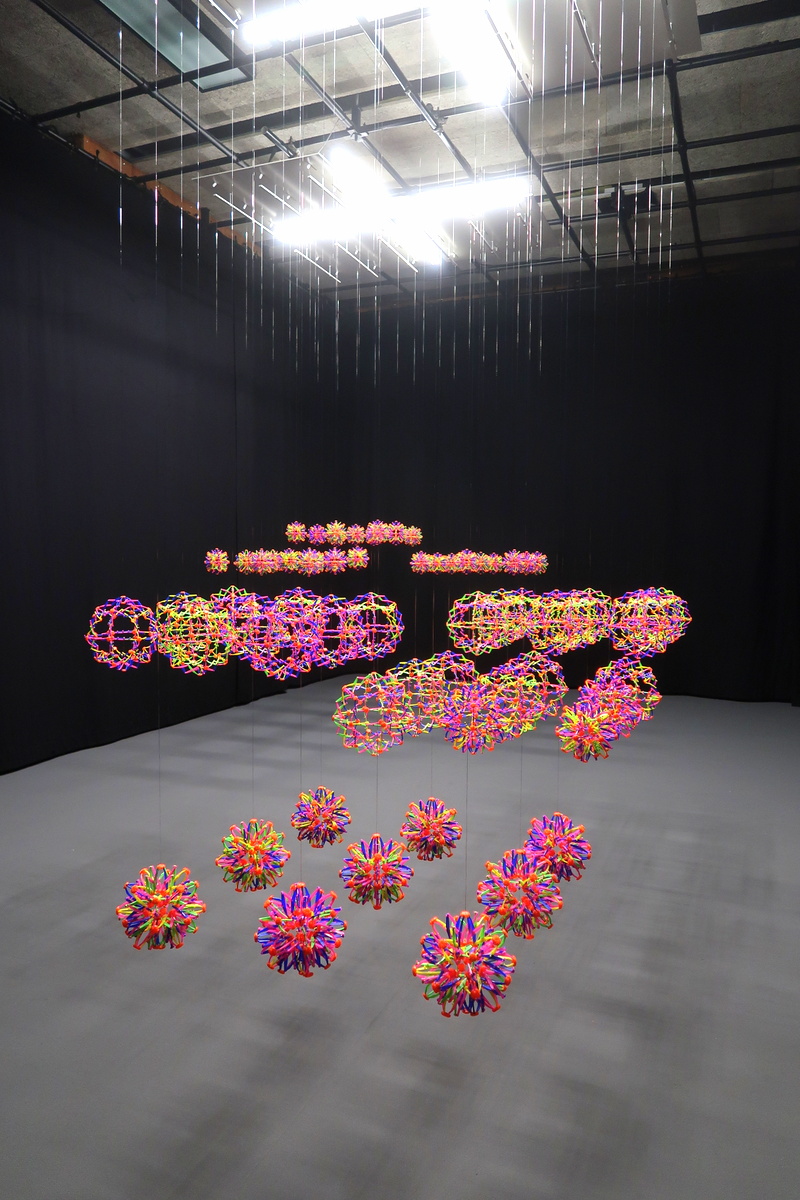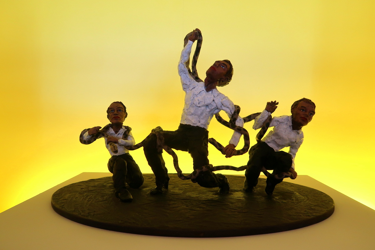 L’une des alvéoles de l’ancien fort militaire dans lequel sont installés les jardins suspendus abrite Sisyphus Casemate, d’Henrique Oliveira. L’artiste s’est inspiré d’ouvrages médicaux et a symbolisé des réseaux dont le contrôle échapperait à l’Homme.