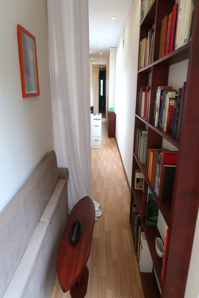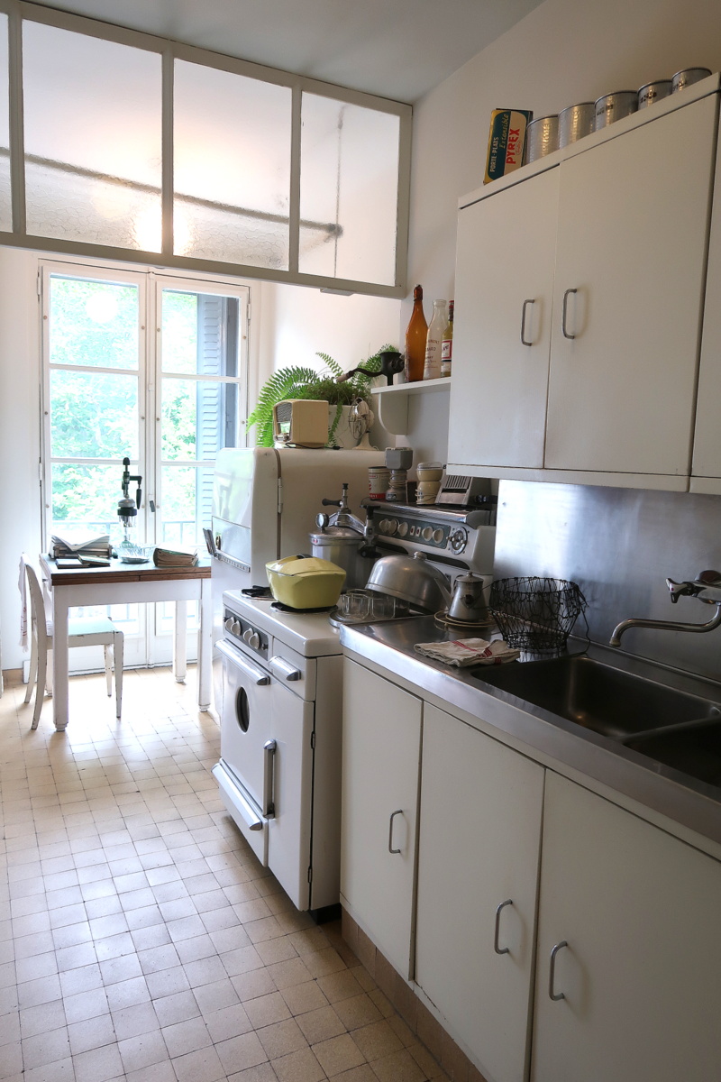L’appartement mesure 99m2 et compte 6,24 mètres entre les poteaux (ne parlez pas de mur porteur !). Tout de suite après la guerre, 6 à 7 personnes vivaient dans un tel logement. C’était l’époque du baby boom ! Moi qui aime relier ce que je vois à des repères que je peux avoir, je me dis que c’était l’époque où mon père avait 2 ans et ma mère était dans le ventre de la sienne.