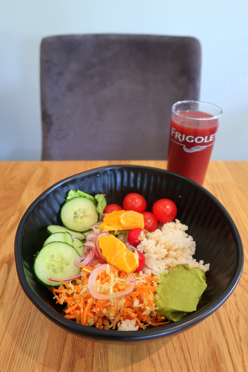 Pour notre premier déjeuner au Havre, nous avons découvert une jolie adresse : Monsieur Auguste. Après un jus de fraise (3,40€) en apéritif, je m’y suis régalée d’un bowl vegan (12,90€) à base de riz à sushi, guacamole, salade, concombres, chou, carotte, radis, tomates cerises, agrumes et sauce soja. J’ai terminé le repas sur un thé gourmand (9€).