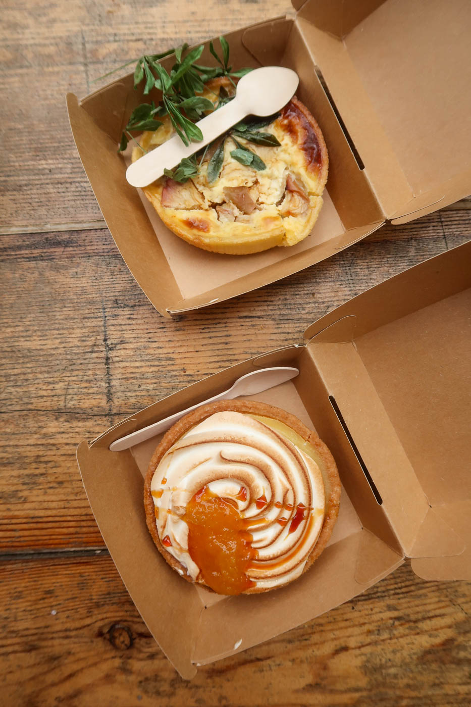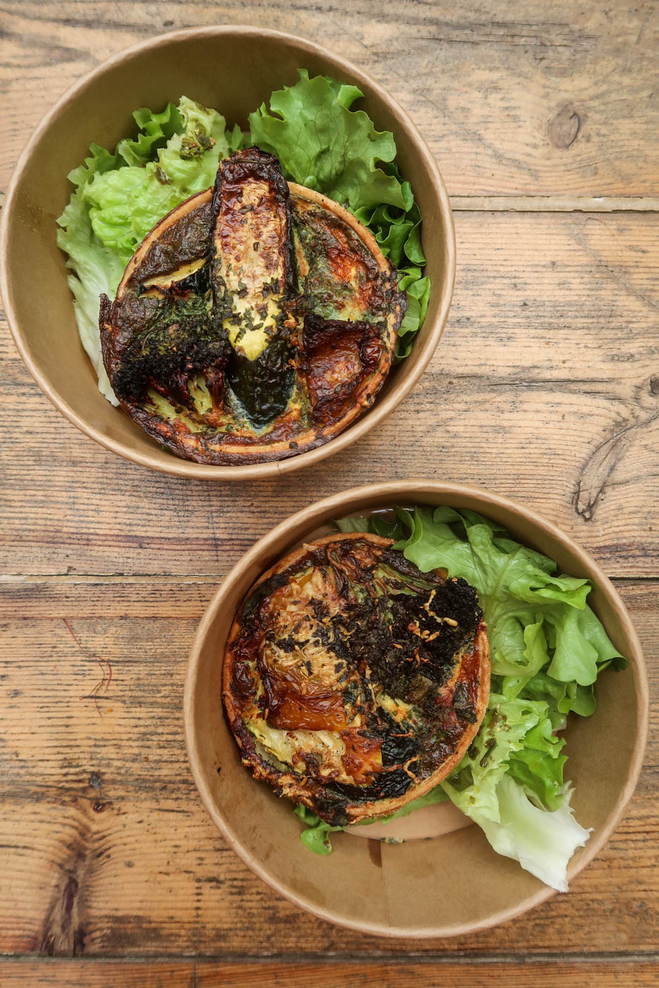 - une quiche aux légumes herbacés et sa salade verte (ou un sandwich), qui manquait un peu de sel à mon goût mais restait bonne