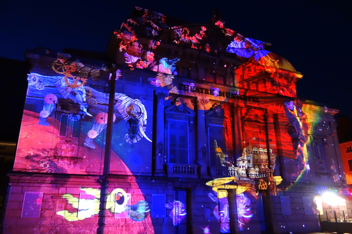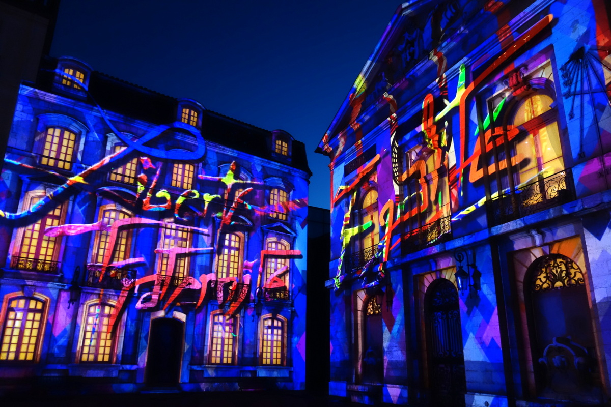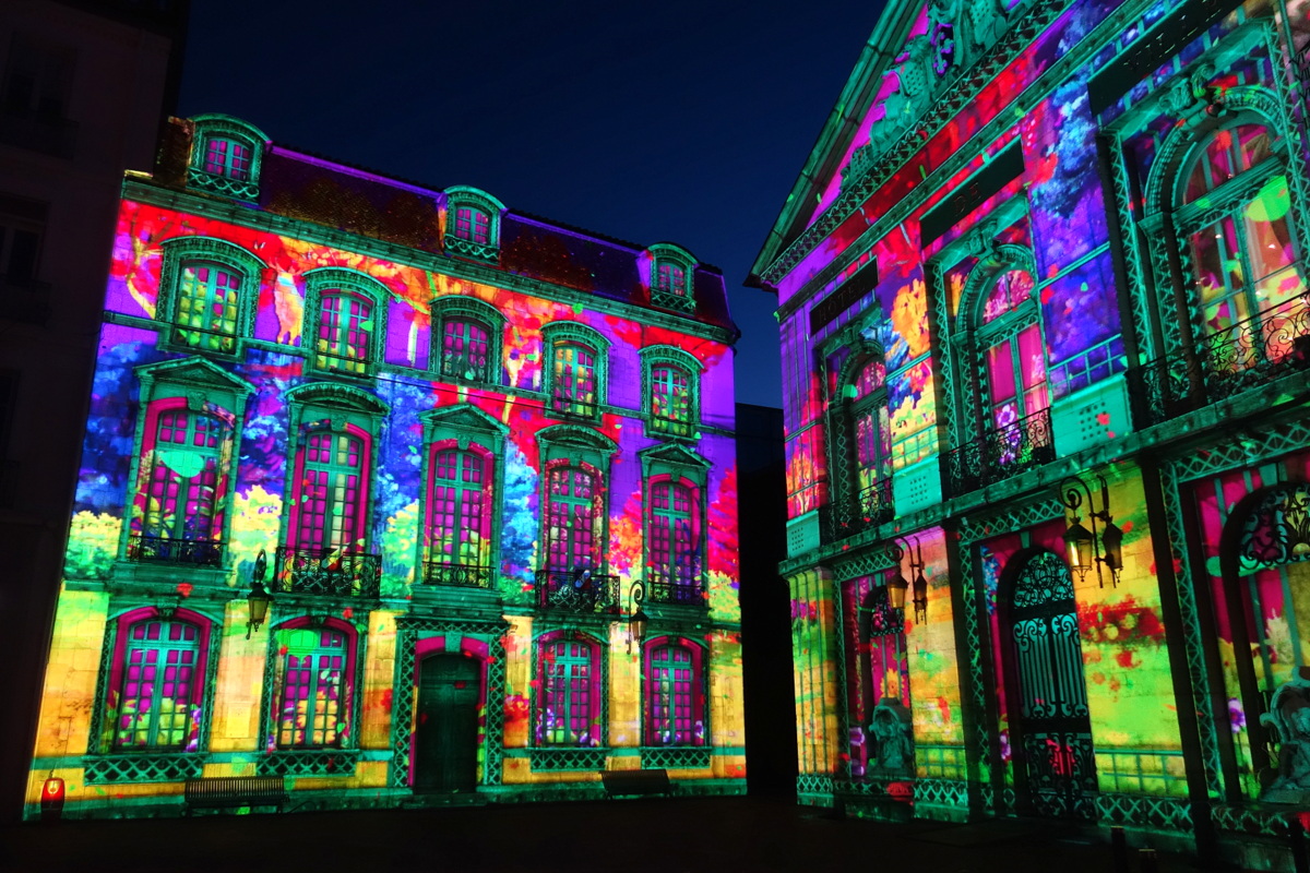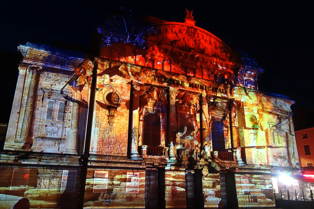 La ville de Bourg-en-Bresse organise un spectacle de lumières, intitulé Couleurs d’amour, sur la façade :