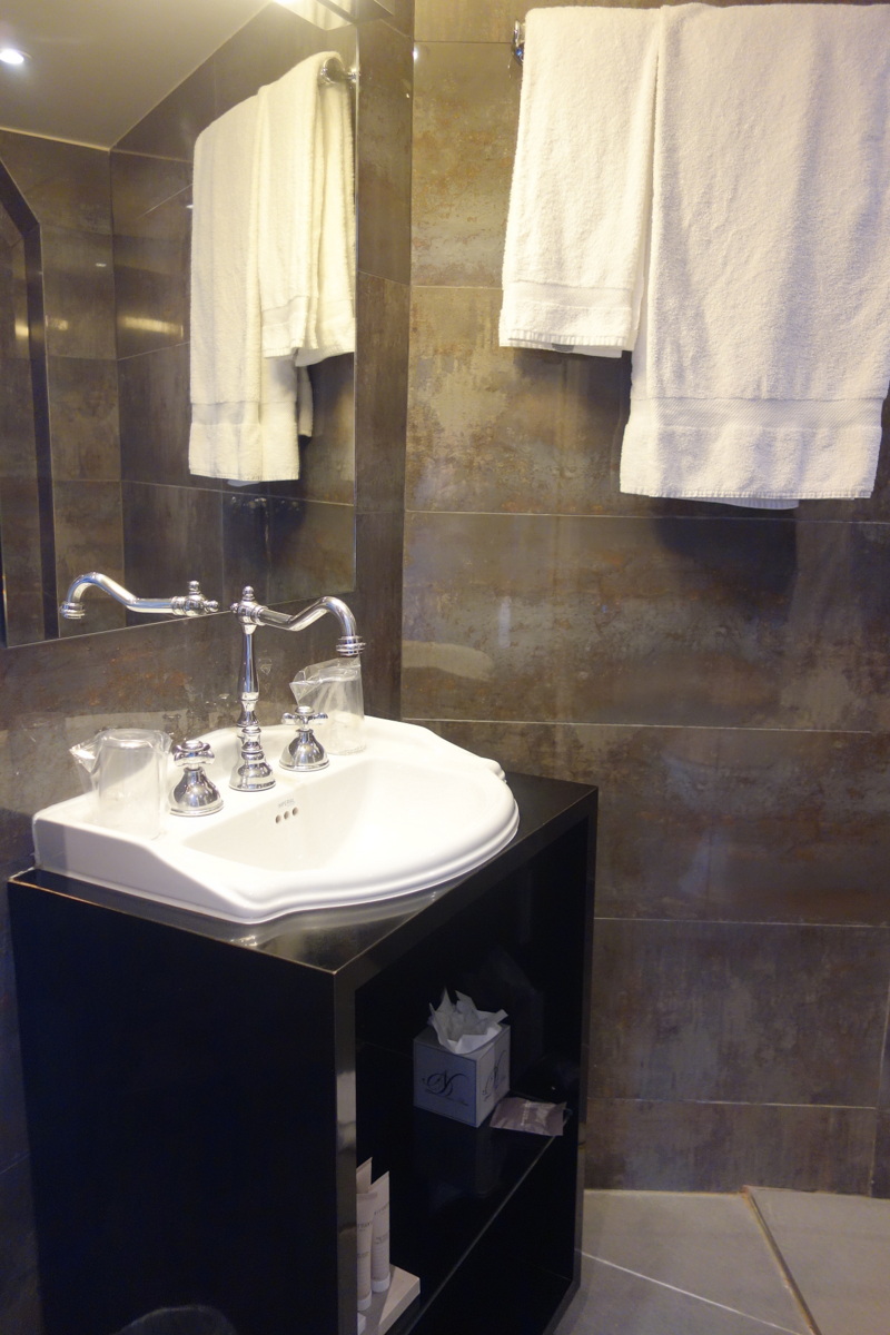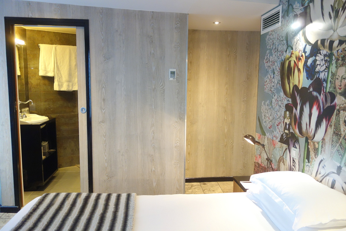 Le lit est un 160 cms de large. C’est toujours notre petit (ou grand plutôt !) plaisir à l’hôtel que de dormir dans un lit plus grand que le nôtre. Nous nous sommes très bien reposés dans cette literie de qualité. Le double vitrage a bien étouffé les bruits de la circulation sur les quais.