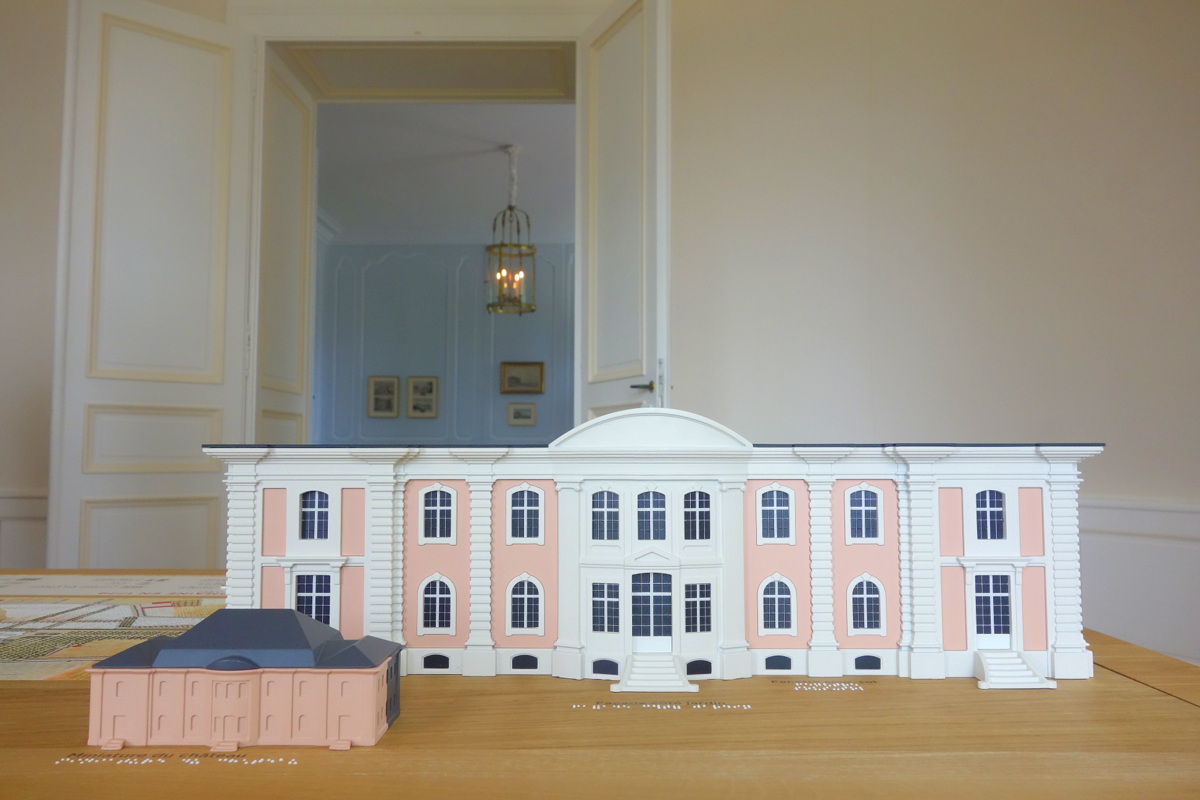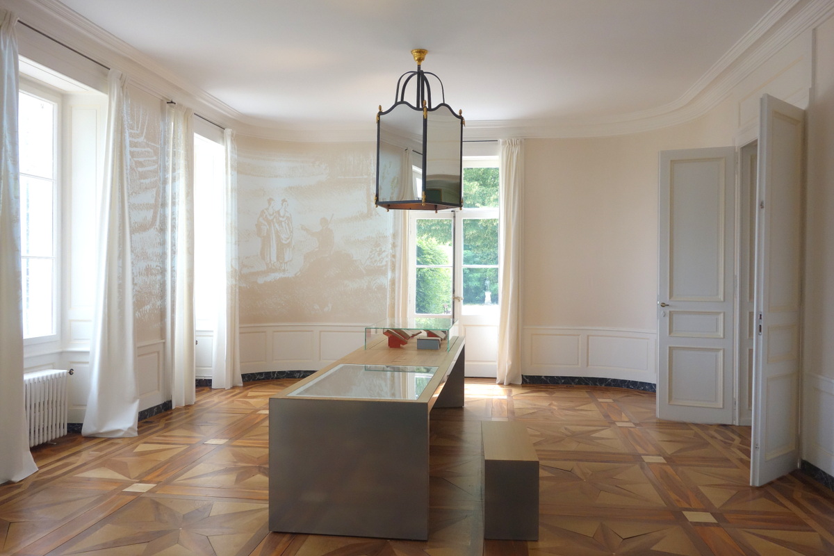 Des échantillons des textiles existent encore, de même que la maquette de la demeure, et ont permis de recréer des pièces très fidèles à celles d’origine. Le clavecin qui agrémente le salon de Mme Denis ne manque pas d’attirer le regard des visiteurs ! Des fauteuils venant du même atelier d’ébénisterie que ceux d’origine s’y trouvent également.