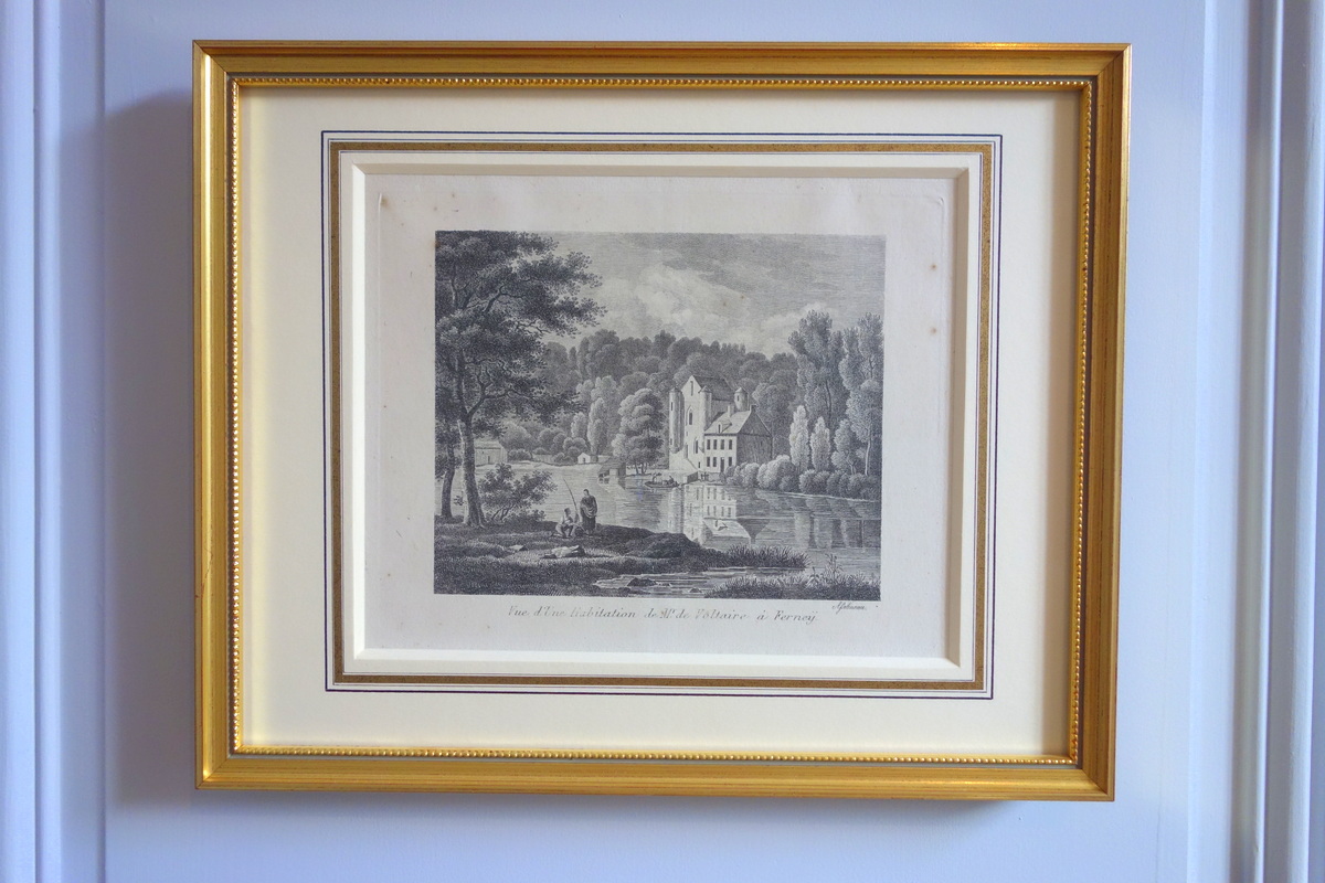 Ayant dû quitter la Cour de France et Genève, Voltaire s’est installé à Ferney où il a racheté une seigneurie modeste et dont il a fait un bourg en expansion. Il a fait bâtir un nouveau château, où il passait son temps à écrire ou à recevoir, y compris des personnes qui voulaient son aide (c’est ainsi qu’il a refusé d’écouter jouer un certain petit Wolfgang !). Si l’Homme est mort à Paris, il a tout de même vécu en ces lieux à la fin de sa vie.