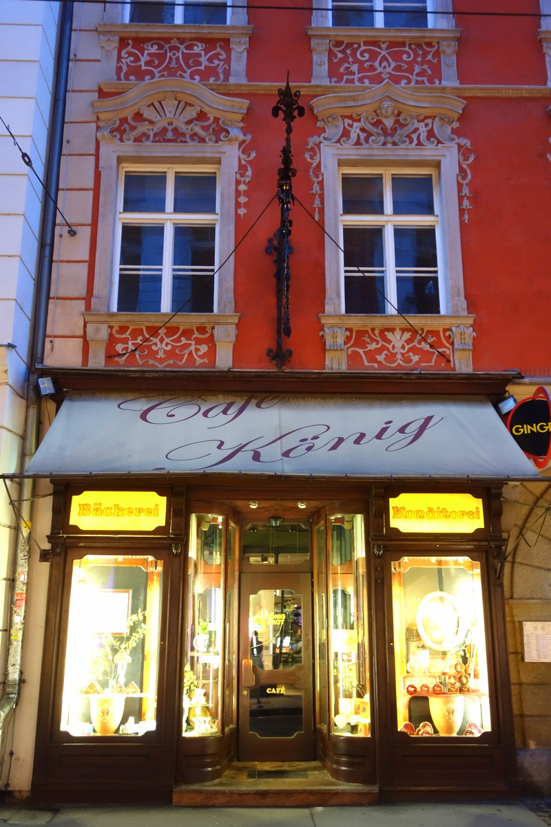 Nous sommes allés voir de plus près la Hofbäckerei Edegger-Tax, qui vend les gâteaux « baiser de Sissi ». La devanture est absolument superbe ! Une camionnette garée devant nous a un peu bouché la vue cela dit. Nous sommes rentrés mais n’avons pas été très attirés par les pâtisseries. Si vous êtes bec sucré, vous serez sans doute plus tentés que nous.