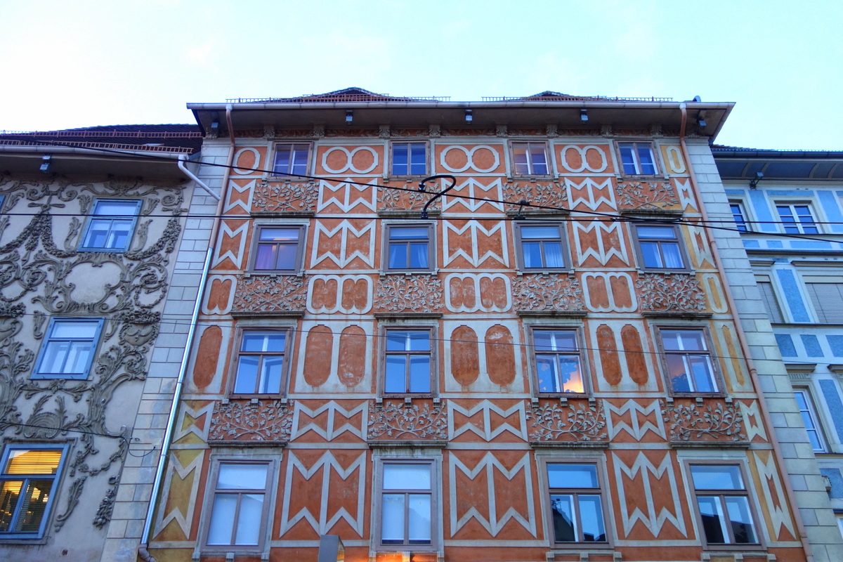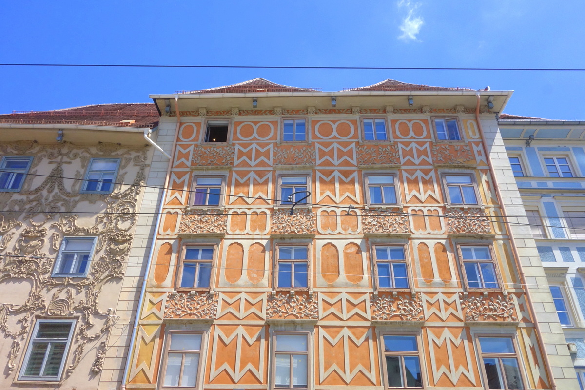 Voyage en Autriche - Graz - Façades d'immeuble typiques