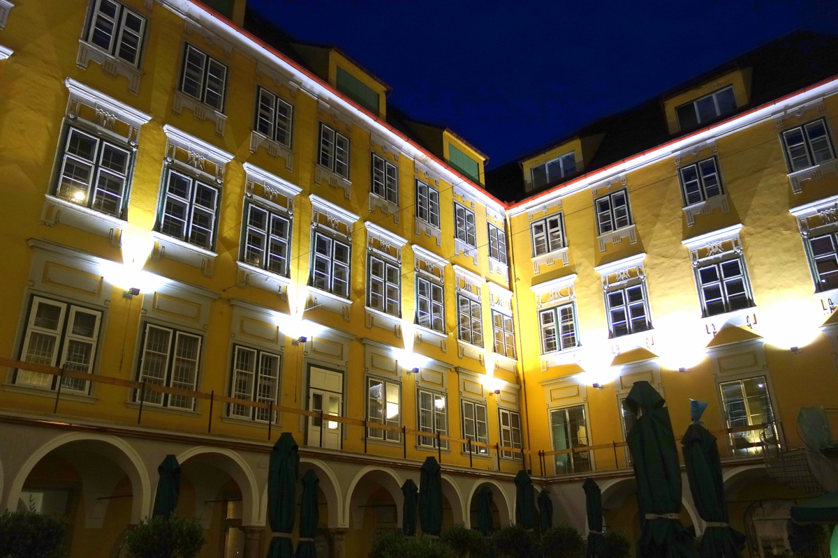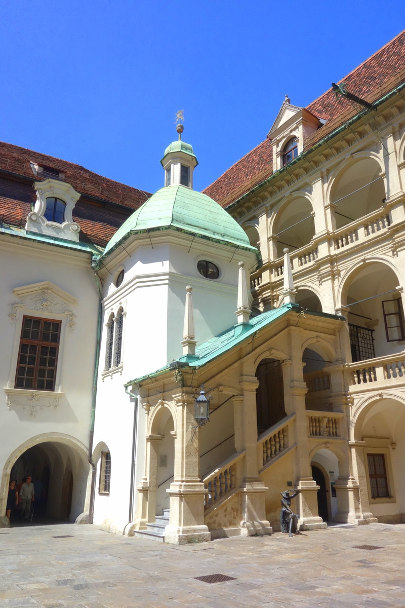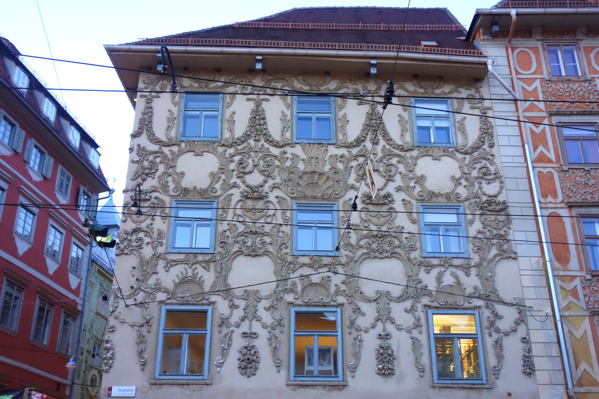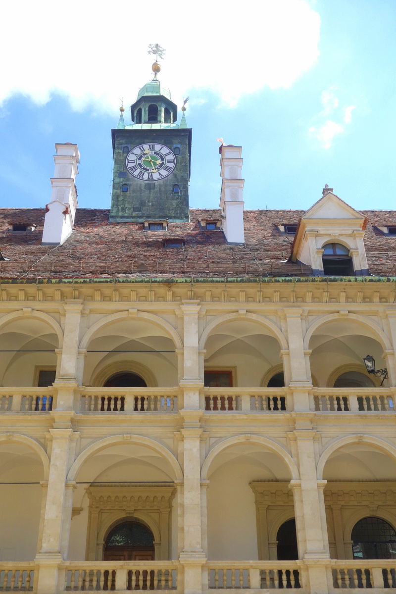 Landhaus (la maison de campagne, vraiment ?) est le siège du gouvernement régional de la Styrie et un chef d’œuvre de la Renaissance. La cour intérieure est signée de l’architecte italien  Domenico Dell’Alio. L’édifice a dans les 460 ans : sa construction date de 1557. L’intérieur n’est pas ouvert à la visite (snif).