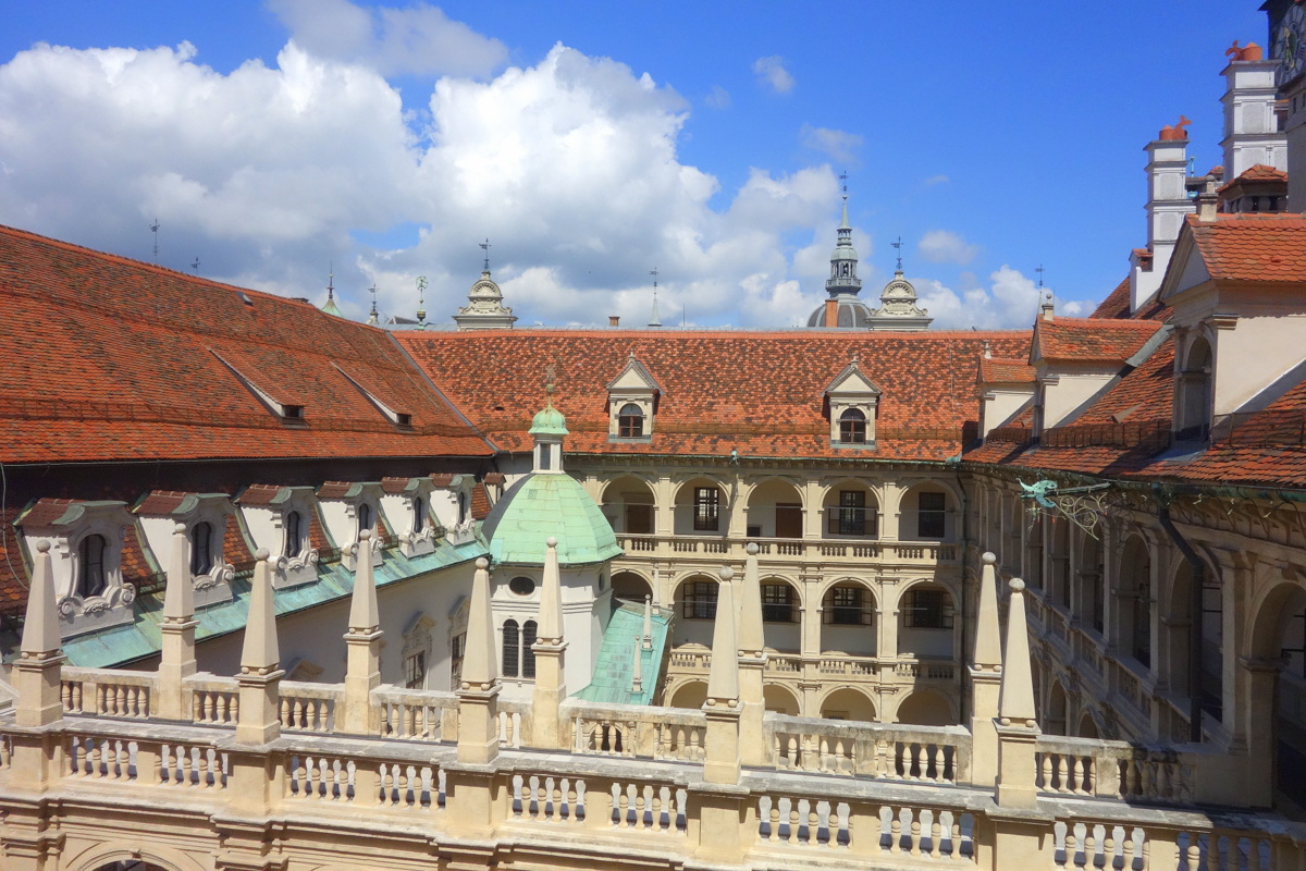 L’escalier à double révolution en colimaçon – le Doppelwendeltreppe – du château situé juste en face de la cathédrale mérite le détour et est amusant. C’est le seul élément ouvert à la visite des lieux.
