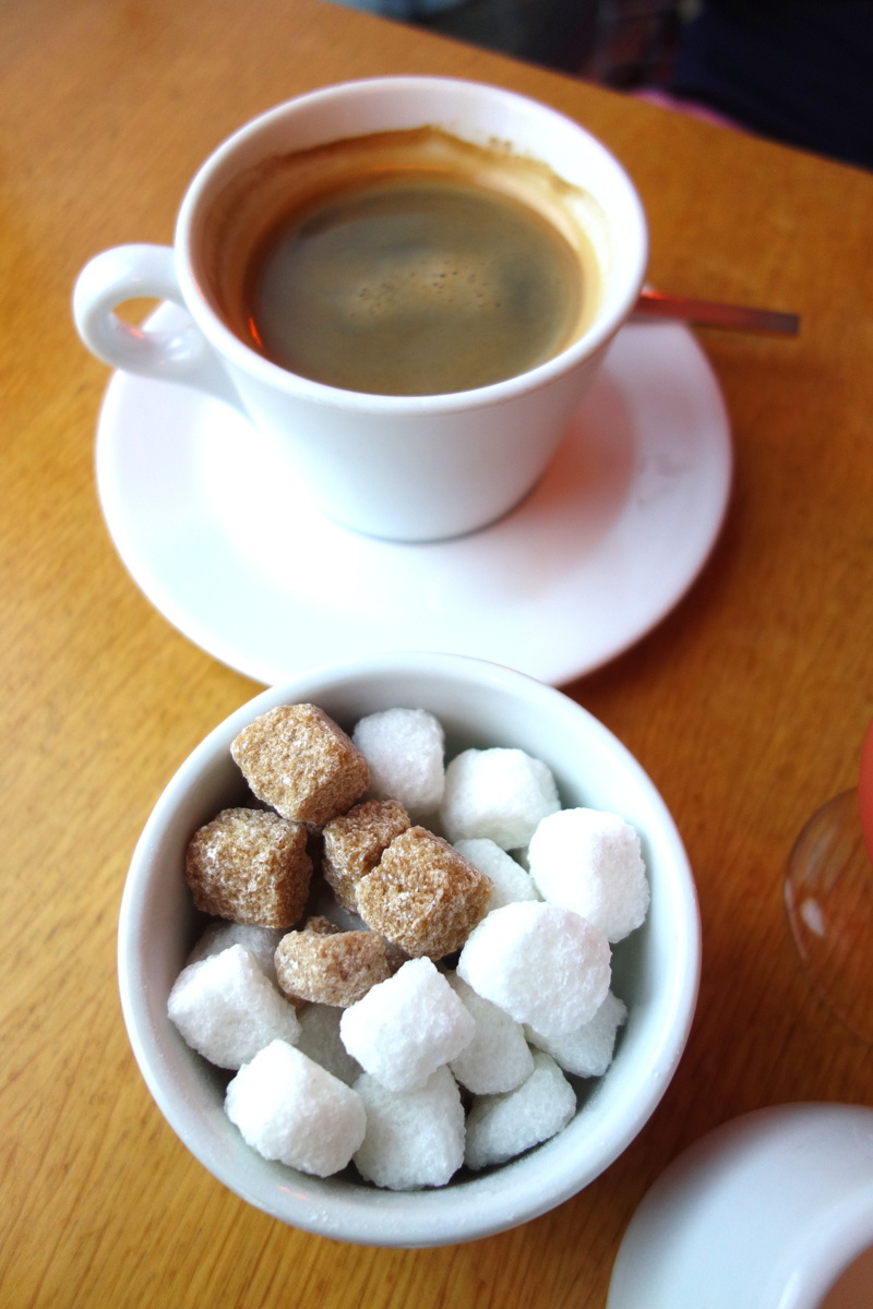 Sister Sadie est la petite sœur de Brother hubbard. Nous y sommes allés en début d’après-midi et le choix était devenu très restreint. J’ai pris quelque chose un peu au hasard car le nom des desserts n’était pas écrit et je ne voyais rien au chocolat. Le roll s’est avéré être aux abricots, un fruit dont je suis peu friande. Je pense malgré tout que ce dessert aurait été excellent pour un amateur d’abricot ! Monsieur a, quant à lui, commandé… un joli café.