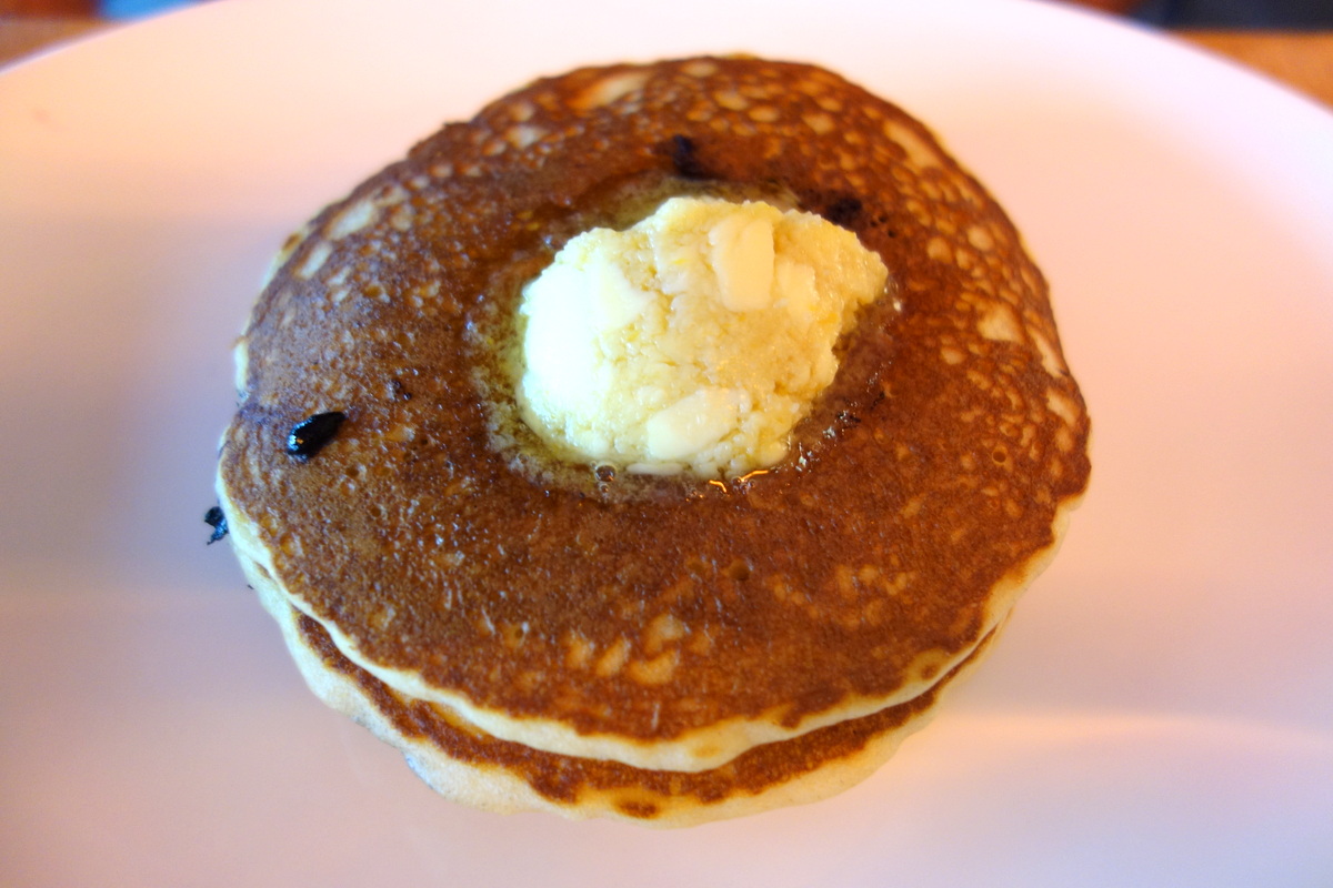 Il aurait été dommage de se priver des pancakes en dessert. Ceux de Monsieur étaient aux myrtilles, en très généreuse quantité.