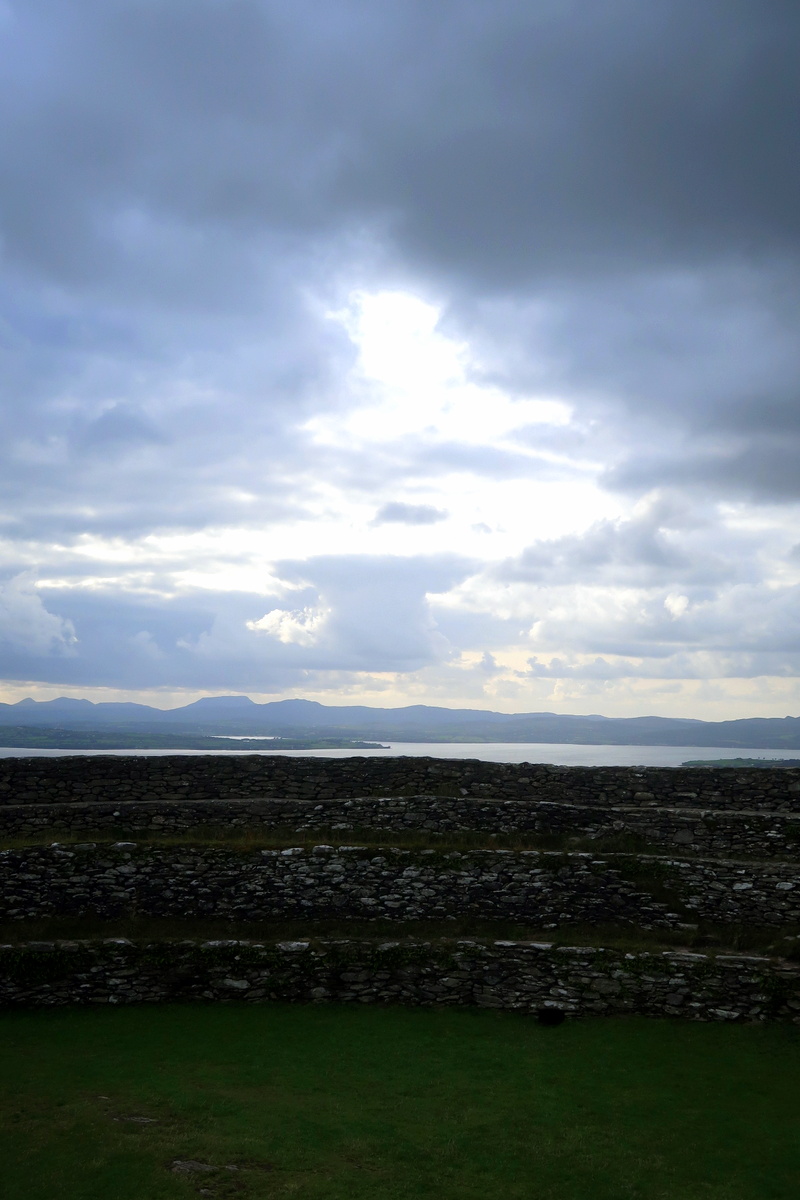 Sur la route qui nous a conduits à Letterkenny, nous sommes allés voir un fort – Grianan d’Aileach – depuis lequel la vue sur le Donegal est superbe. Le vent était encore de la partie mais n’a pas gâché notre plaisir !