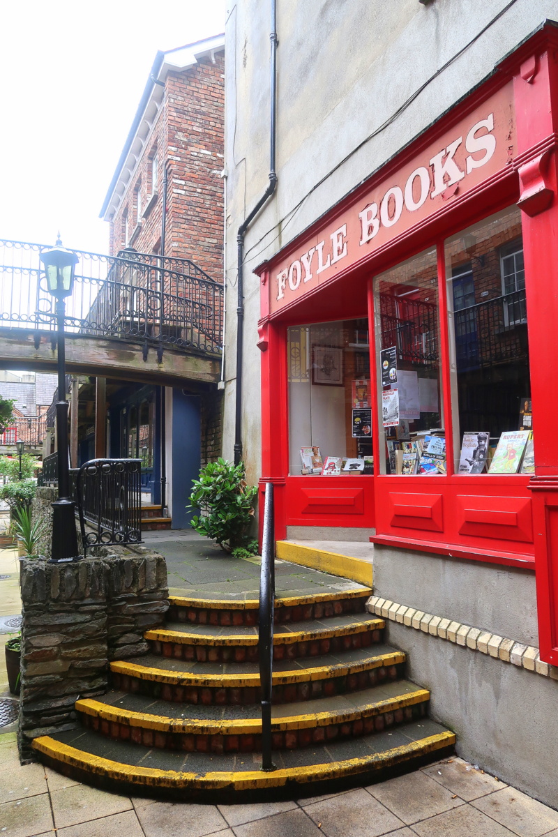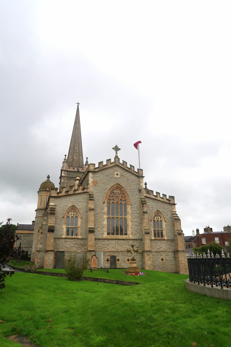 La ville s’est développée autour d’une abbaye fondée en 546. Les remparts ont été construits au début du XVIIe siècle pour protéger les colons anglais. Ils ont permis à la ville de résister longuement aux assauts catholiques à la fin du même siècle. Nous sommes allés sur les remparts depuis lesquels les vues sur la ville sont jolies. Ces murailles ont été occupées jusqu’en 1994 par des soldats britanniques.