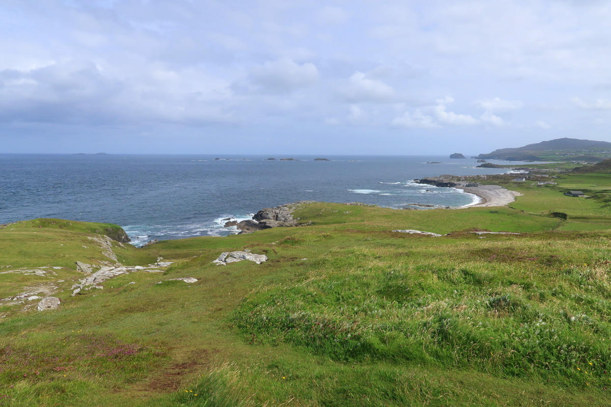 Glengesh Pass présente, avec Mamore Gap, des virages en épingle à cheveux qui surprennent. Bon, 2 virages, c’est pas le Tourmalet non plus. Depuis Ardara, il faut suivre la direction de Glencollumbkille Village.