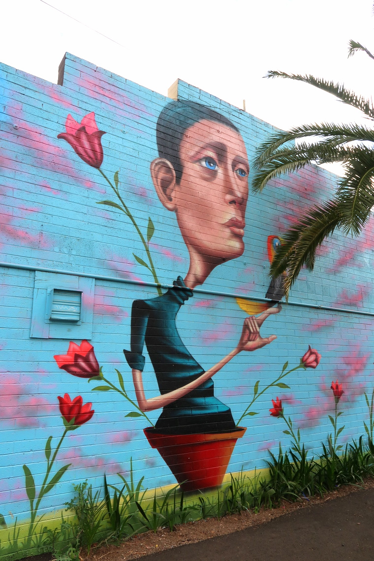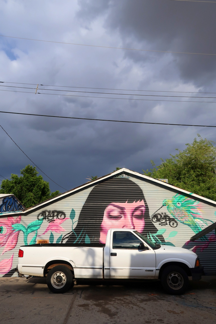 En traversant Phœnix en voiture, nous avons vu un énorme stade – j’avoue que l’univers sportif d’outre-Atlantique m’intrigue et pourrait me faire rêver – mais avons manqué Downtown. En revanche, nous avons découvert par hasard un coin street art et nous sommes donc arrêtés pour regarder quelques fresques.
