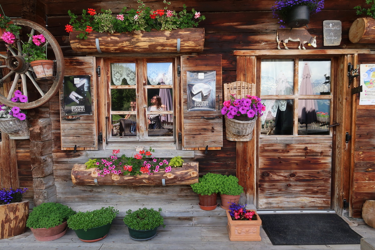 Avant de quitter les alpages, nous sommes allés déjeuner à l’auberge de Plan Bois, une adresse typiquement savoyarde. Nous nous sommes installés en terrasse et avons profité des fleurs et des montagnes.