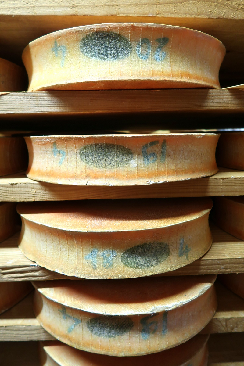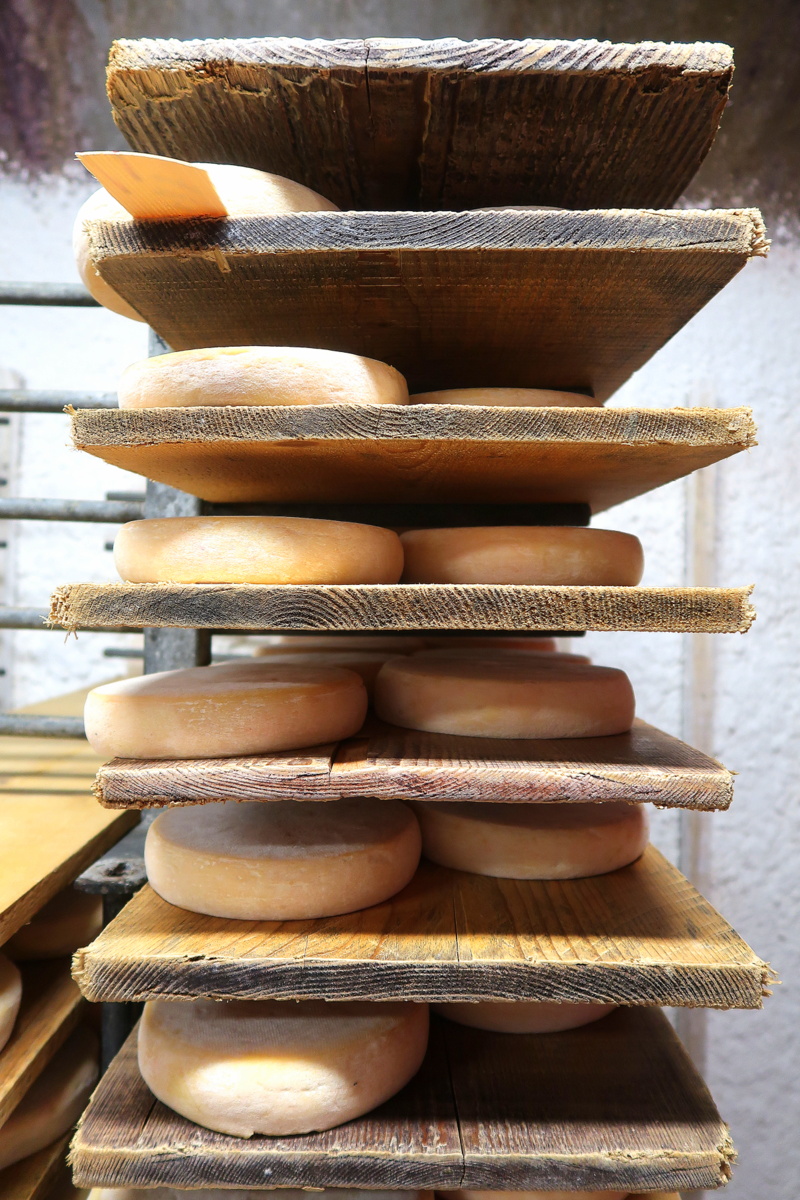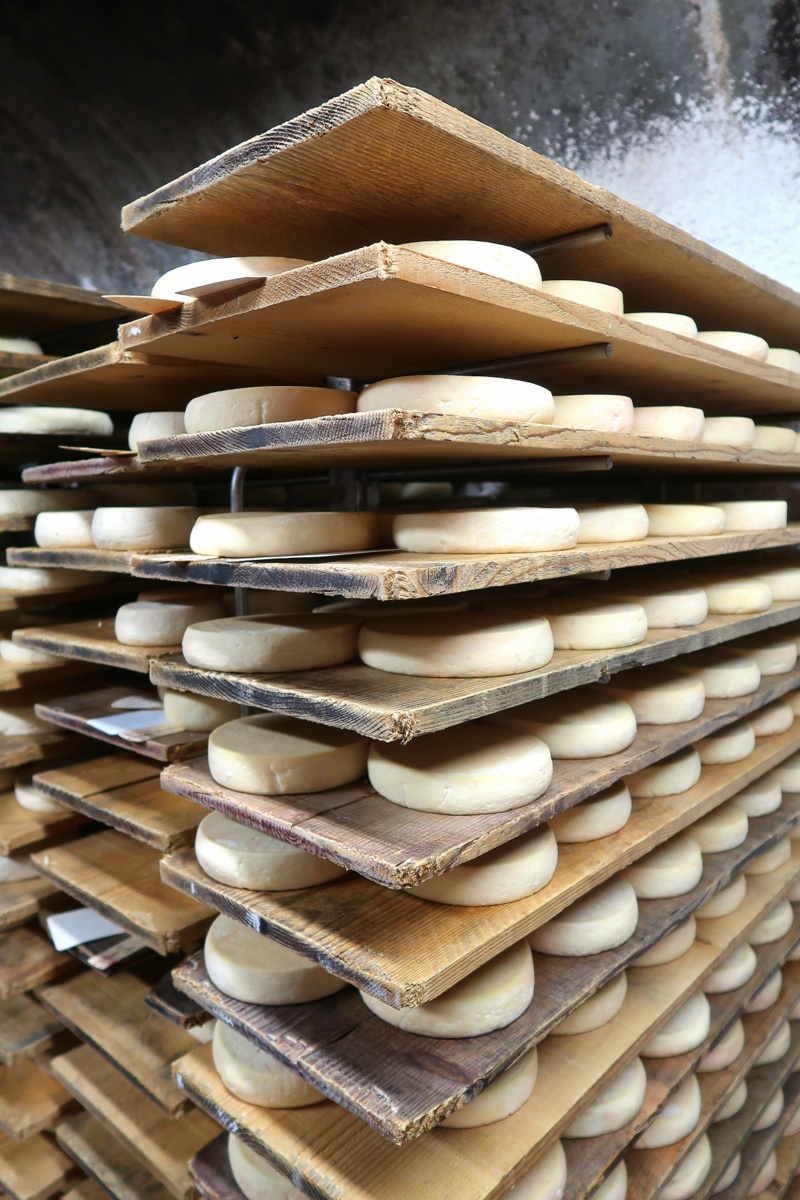 Que ce soit à la ferme ou dans les caves d’affinage, nous avons beaucoup parlé de l’épicéa, le bois, qui n’est jamais traité, sur lequel reposent les reblochons. Ces fromages préparés de façon traditionnelle s’égouttent sans coller sur des planches d’épicéa, qui luttent naturellement contre la listeria et créent un climat favorable pour les bactéries. Une dérogation européenne a été obtenue pour cela car le bois est interdit par ailleurs dans l’alimentaire.