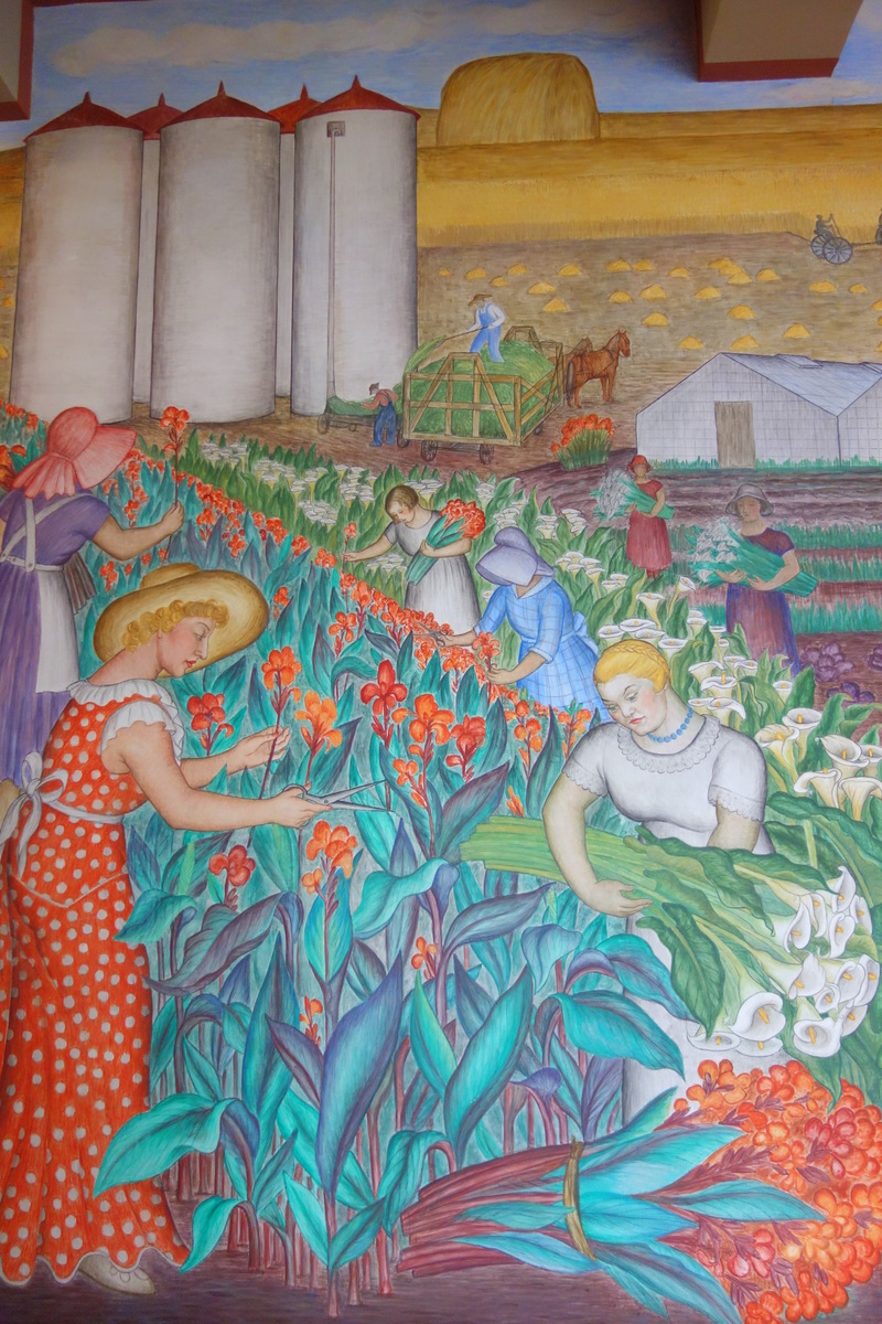 Une fois en haut de ces marches, vous découvrirez la Coit tower. Ce curieux monument cylindrique et art déco est situé au sommet de Telegraph Hill. Il a été construit en 1933 à l’initiative de Lillie Hitchcock Coit. Nous avons visité le rez-de-chaussée, recouvert de fresques murales sur les thèmes de la politique et de la société.