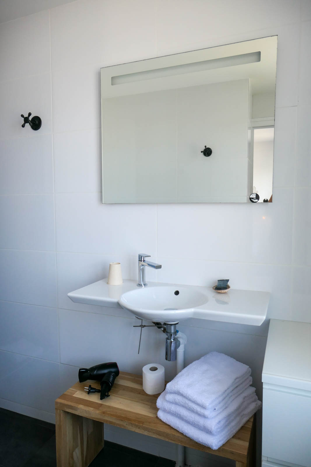 J’ai passé mes deux nuits sur place dans une chambre double de 18 m2, douillette et propre. Elle est à taille humaine et sa décoration est moderne : je m’y suis sentie à l’aise. La place était suffisante et bien adaptée pour un week-end. Les affaires peuvent être posées sur le bureau, quelques vêtements pendus sur un cintre et la salle d’eau est suffisamment bien agencée pour poser facilement trousse de toilette et change sans craindre de les éclabousser. La douche est grande. Tout est pensé de façon pratique : on peut bien brancher ses appareils près des chevets, etc. J’ai vraiment bien dormi, bien installée au milieu des oreillers ♥
