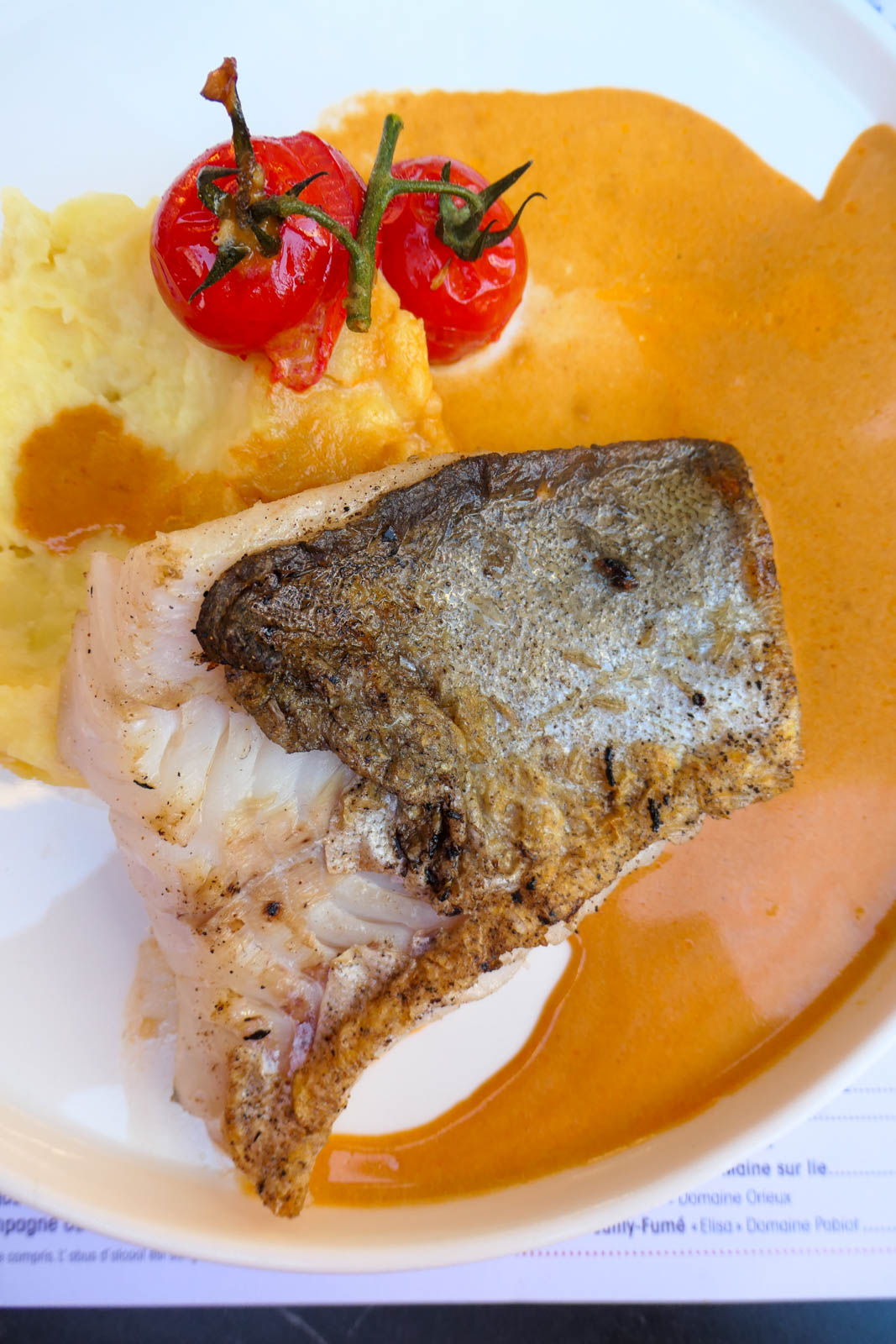J’ai poursuivi avec un très bon plat : la pêche du jour – un dos de lieu jaune, crème de crustacés – et son écrasé de pomme de terre.