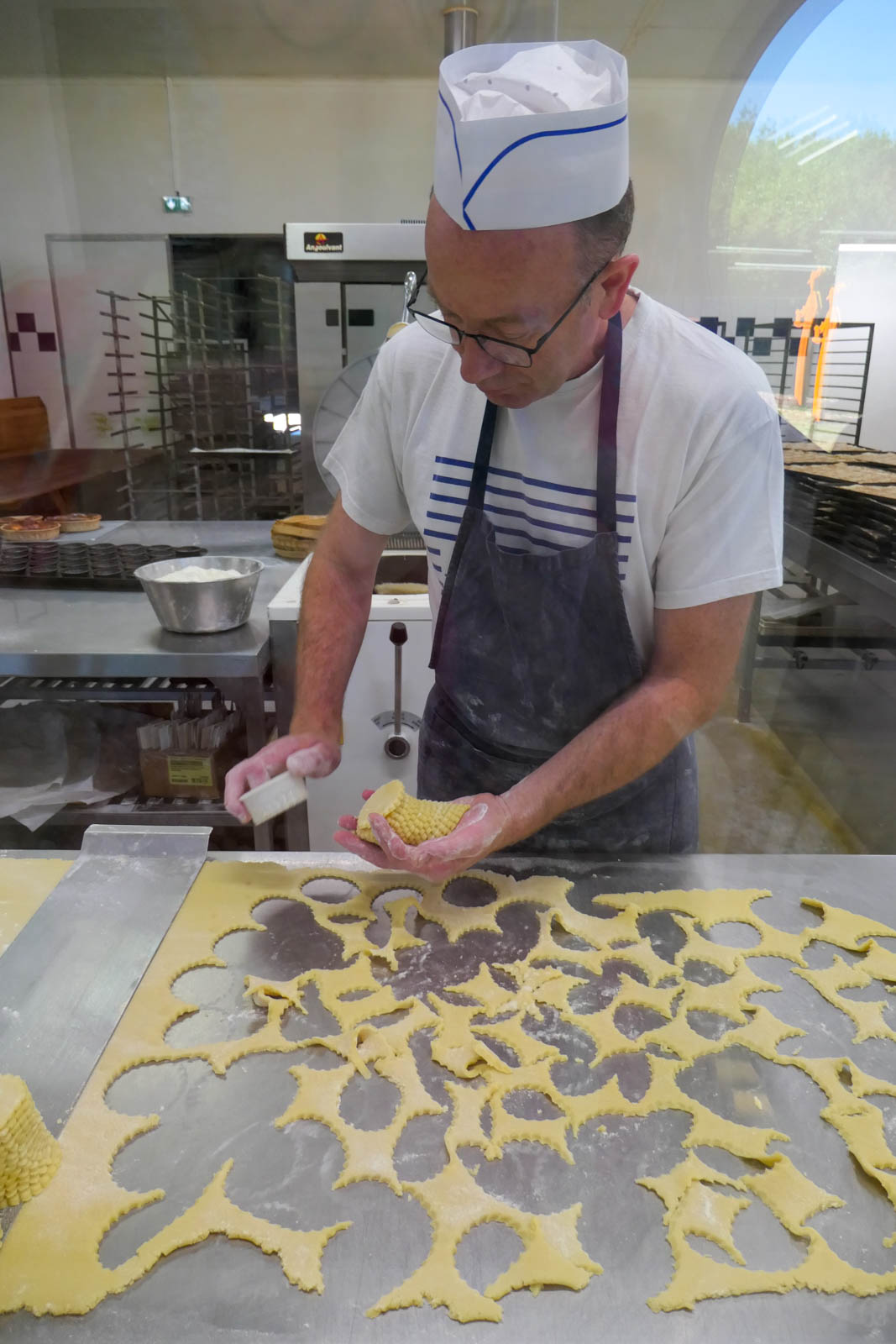 Pour la petite anecdote, nous nous interrogions sur la raison de présence de pruneaux dans des spécialités bretonnes. Cela vient du fait que la Bretagne a logiquement toujours compté beaucoup de marins et que le pruneau permet de lutter contre le scorbut. Lorsqu’ils rentraient chez eux, les marins avaient des restes de pruneaux avec eux et ceux-ci ont été incorporés dans des recettes. Donc non, vous ne verrez pas de pruneaux locaux. Dans la biscuiterie familiale visitée, ce sont des pruneaux d’Agen qui sont cuisinés.