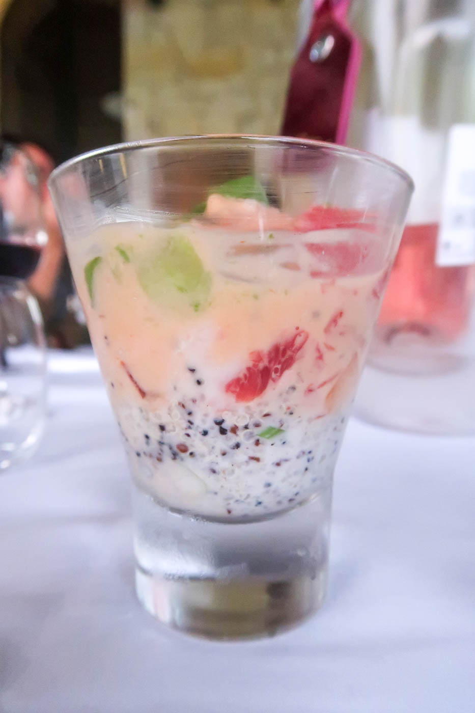 Pour le dîner, nous avons profité des talents d’un traiteur auquel le château de Tauziès fait régulièrement appel. Mention spéciale pour la divine verrine ! Dans tous les cas, n’hésitez pas à vous adresser à vos interlocutrices du château pour évoquer les possibilités de se restaurer.